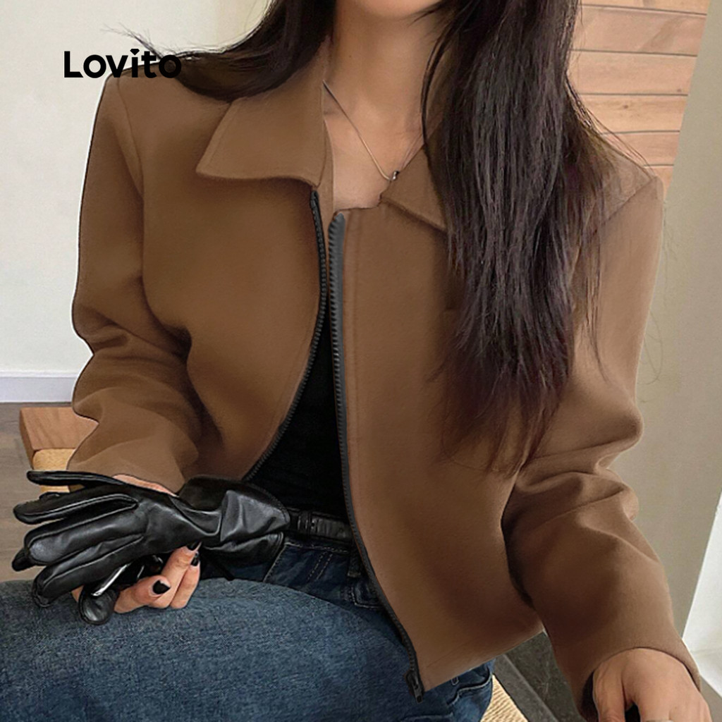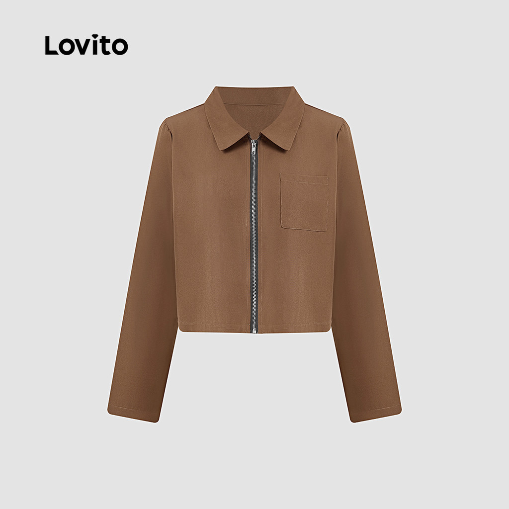 Lovito Jaqueta Casual com Zíper Primavera/verão Marrom para mulheres L154ED065