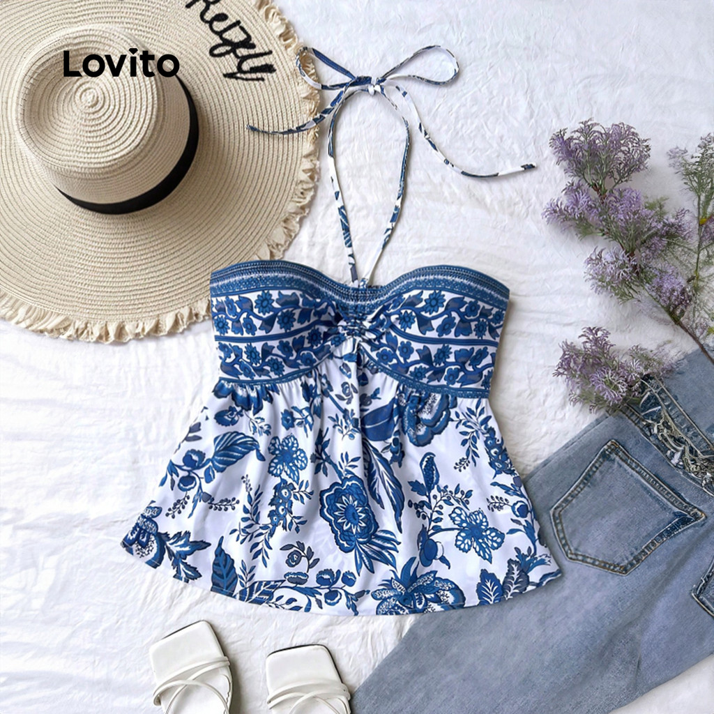 Lovito Regata Feminina Com Estampa Tribal Boho Com Cadarço L133ED103