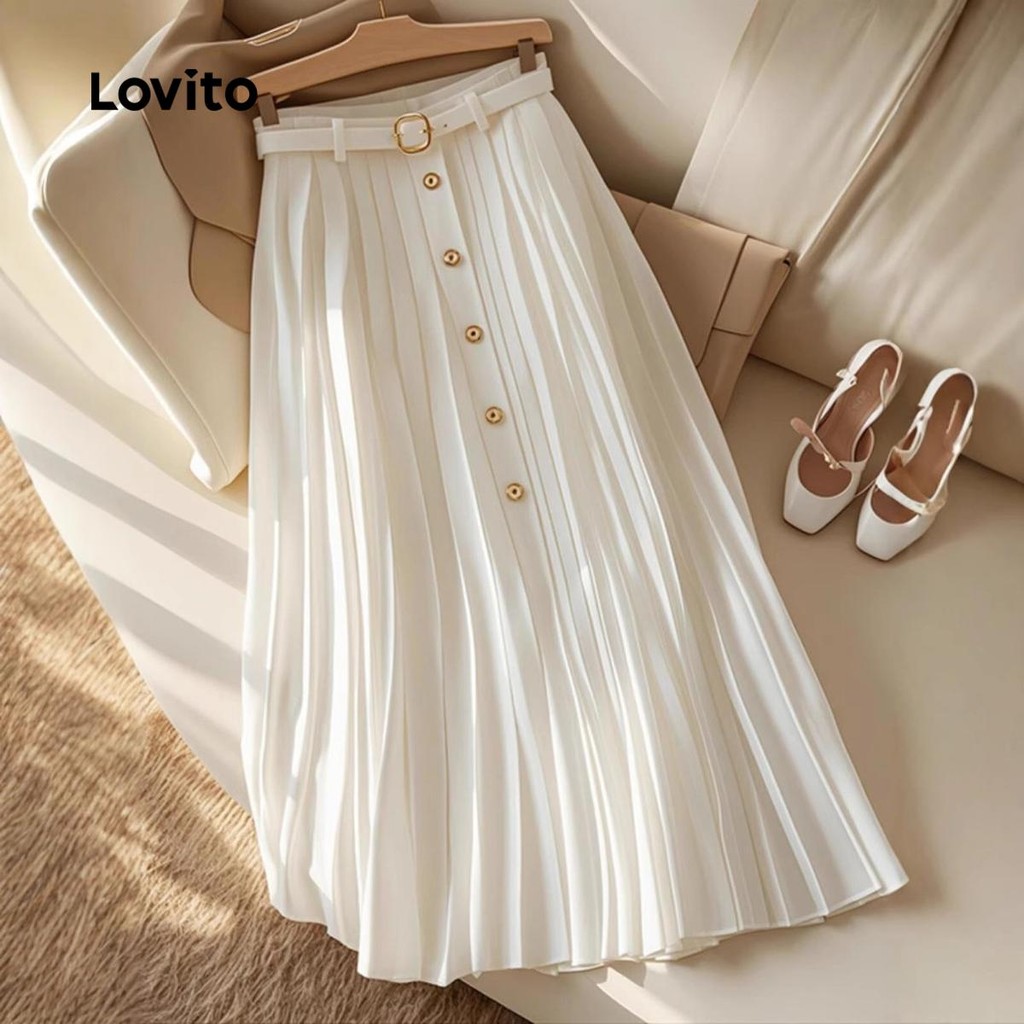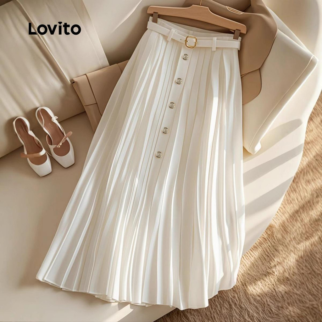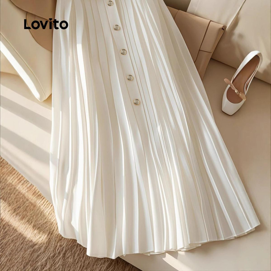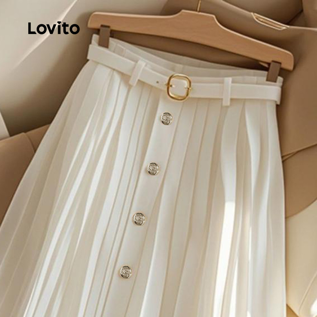 (Trendy) Lovito Saia elegante com botões lisos para mulheres LNL101641