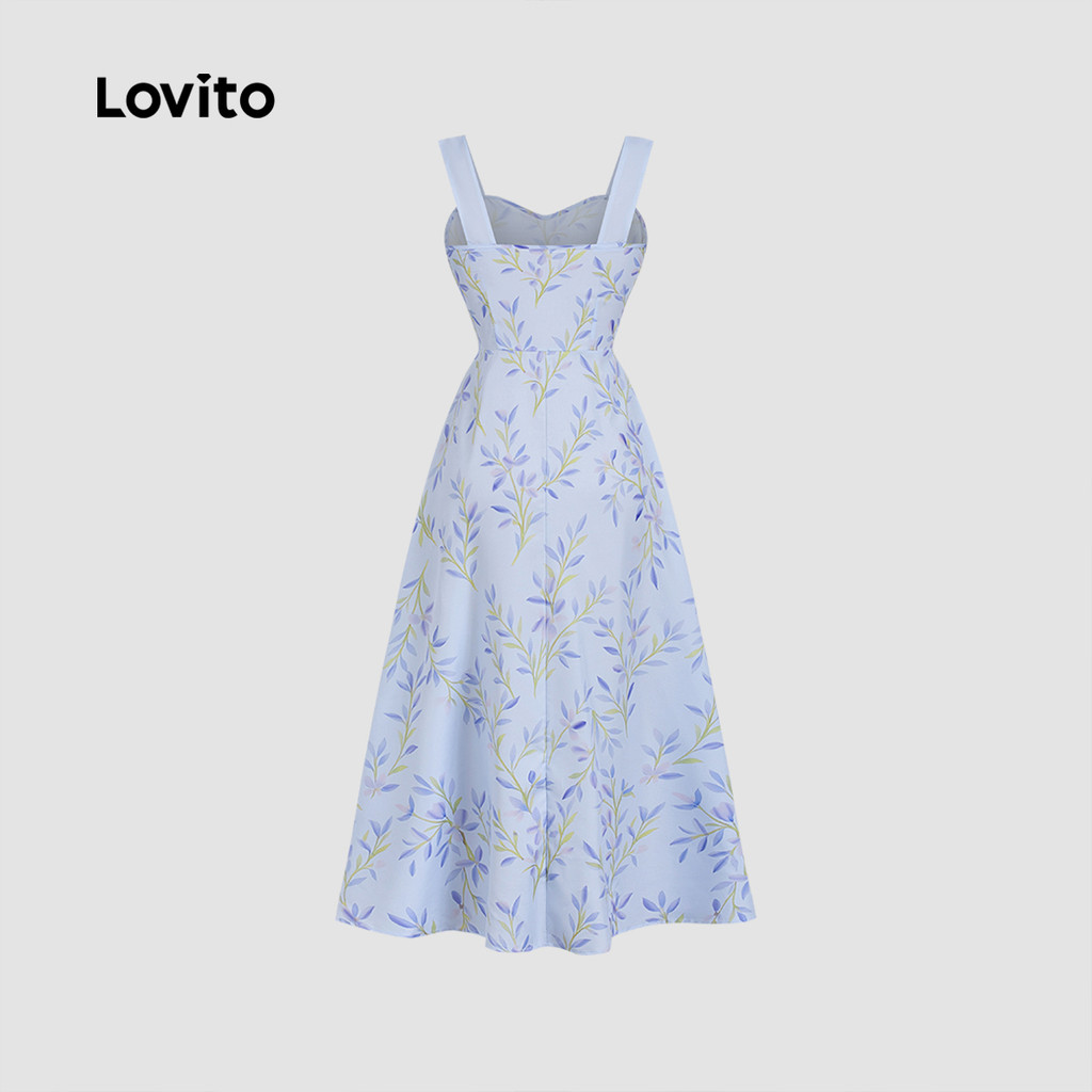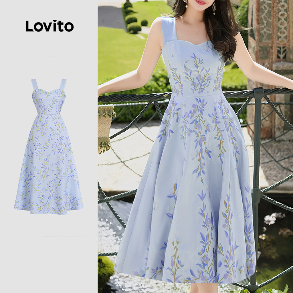 Lovito Vestido Elegante com Estrutura de Linhas Flores Fecho de Zíper Primavera/verão para mulheres L143ED184