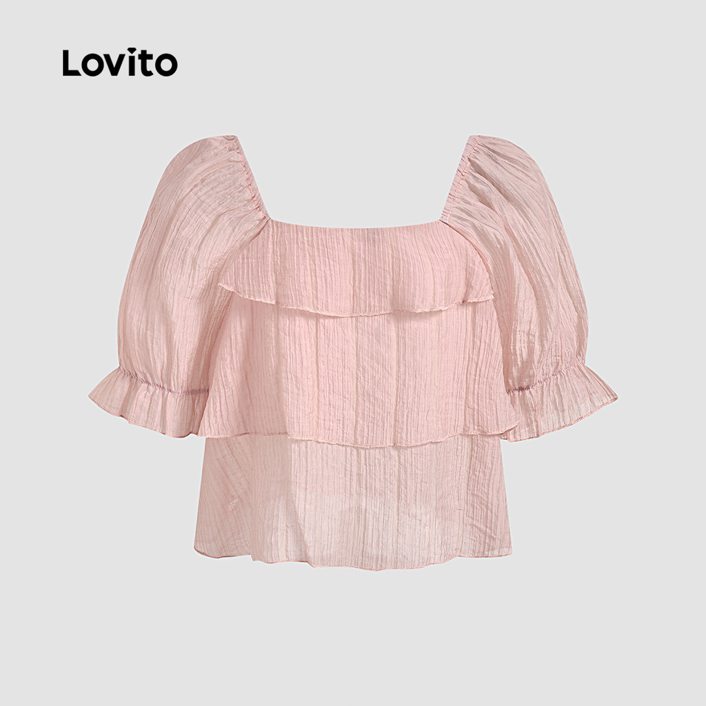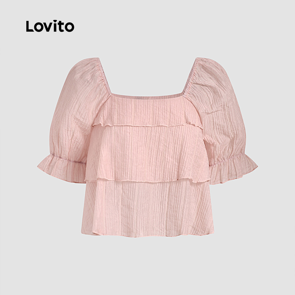 (New) Lovito Blusa Casual de Camadas com Jacquard e Babados Primavera/verão Blusa Rosa para Mulheres L142ED090