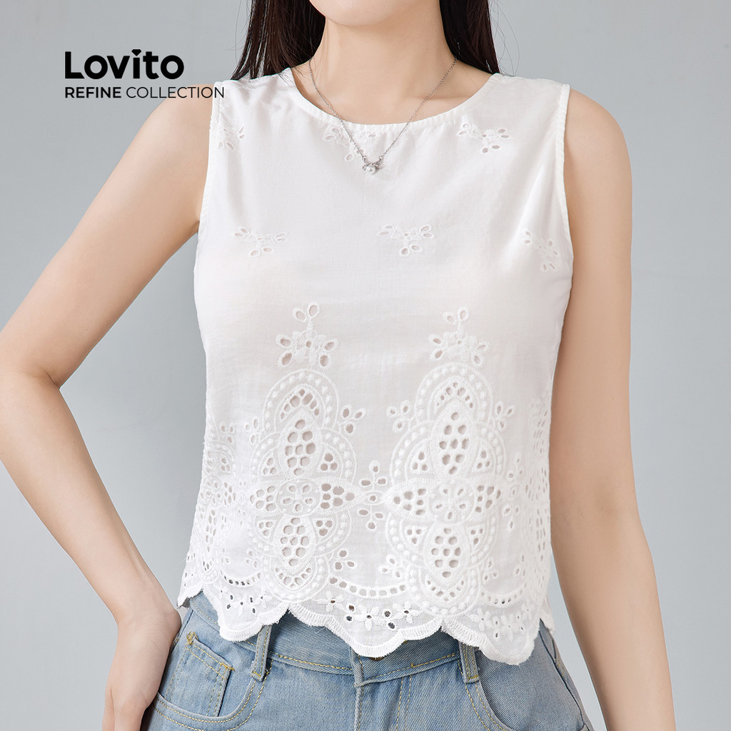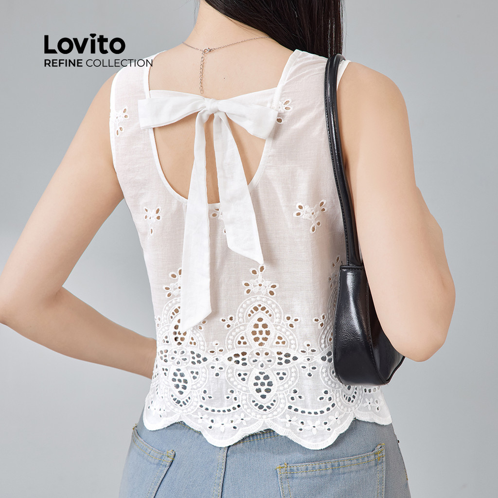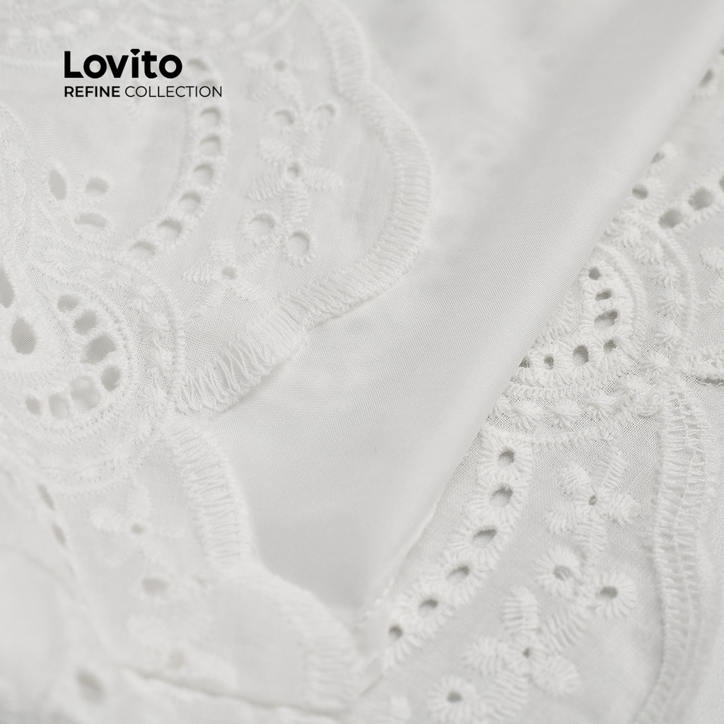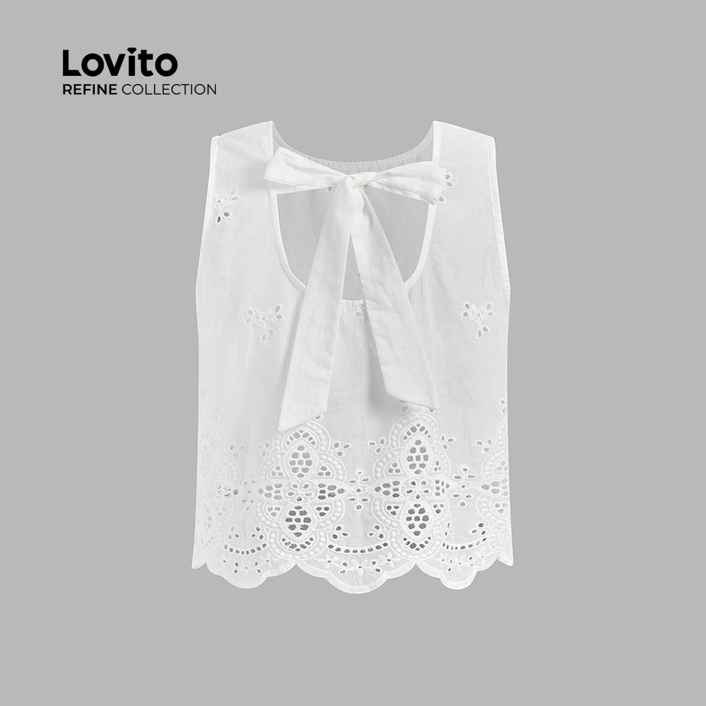 (NEW) (Lovito Refine) Blusa Casual com Babados Exagerados Amarre Nas Costas Primavera/verão branca LR13E004