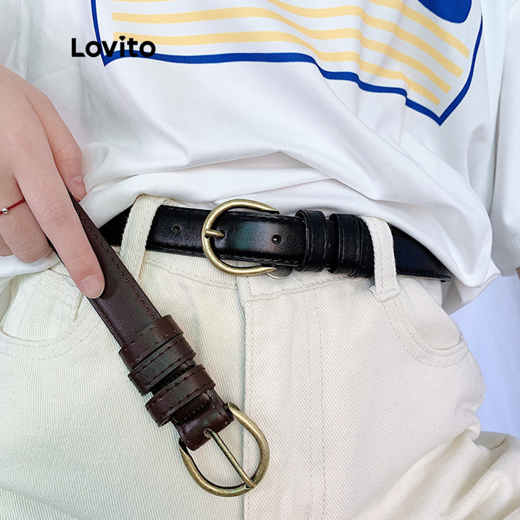 (Trendy) Lovito Cinto Casual Liso Básico Poroso Para Mulheres L38ED011