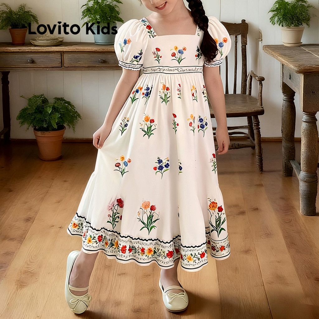 Lovito Kids Vestido Fofo com Franzido para Menina Ideal para primavera/verão L153ED169