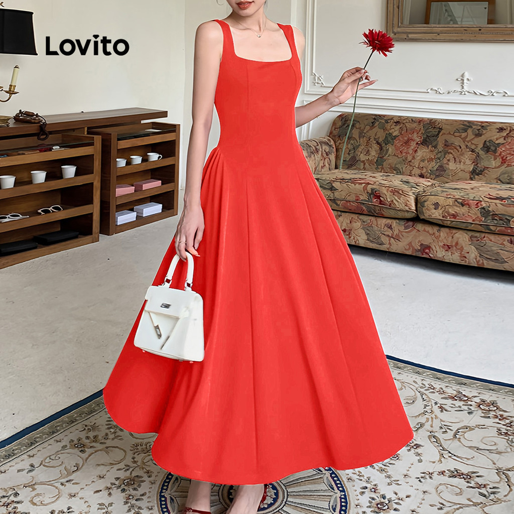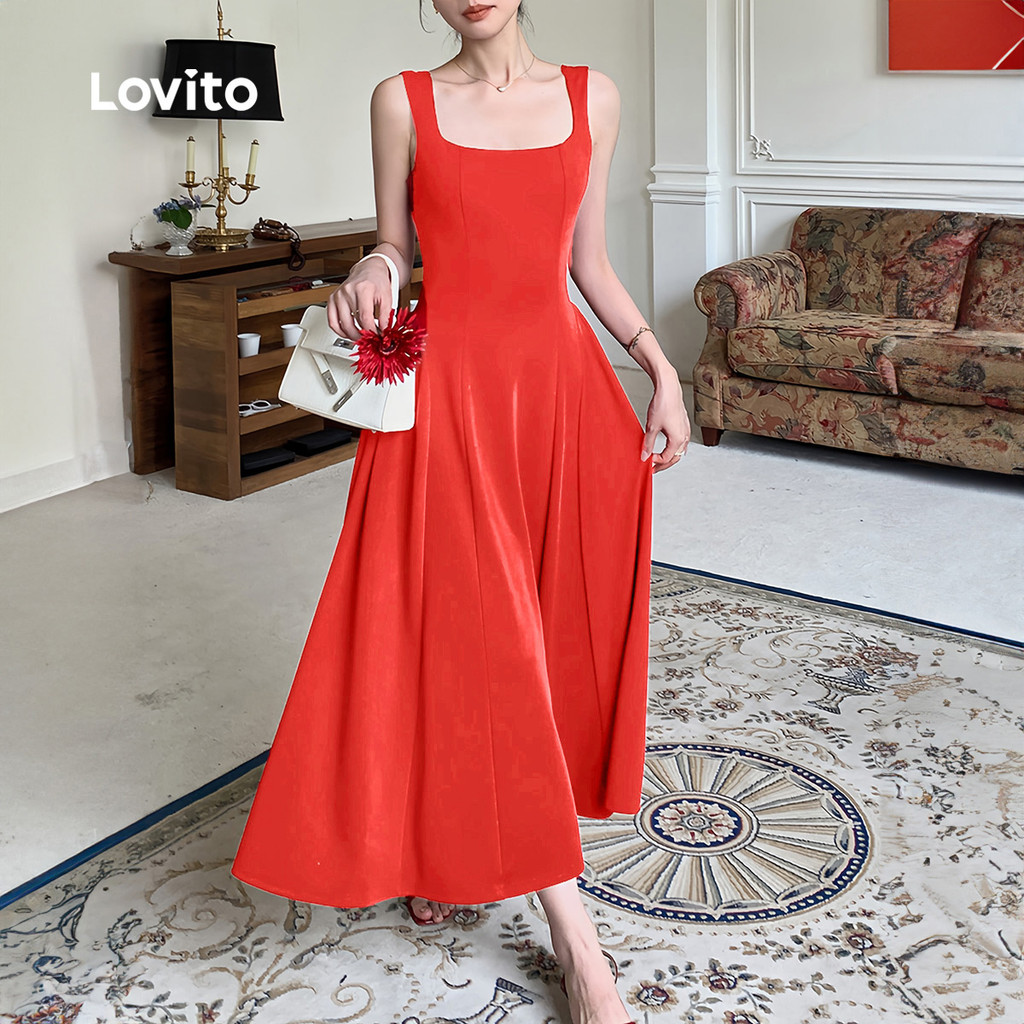 Lovito Vestido Elegante Plissado Primavera/Verão Vermelho Vestido Evangélico para Festa de Natal Mulheres LBL29083
