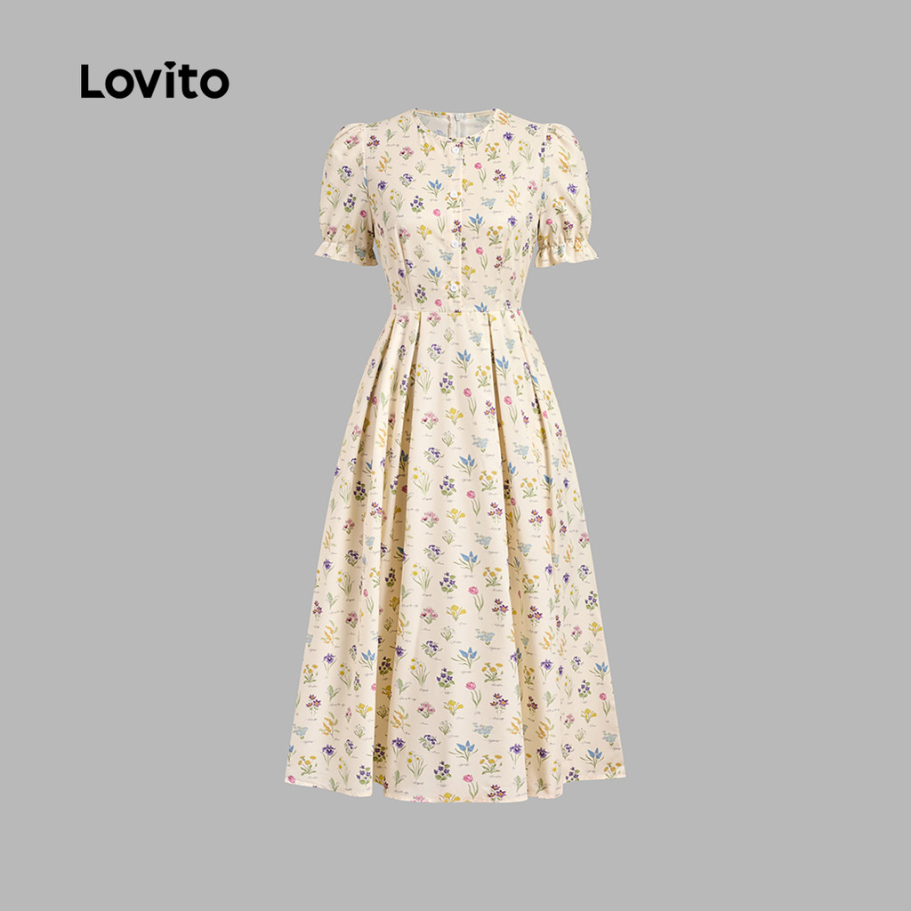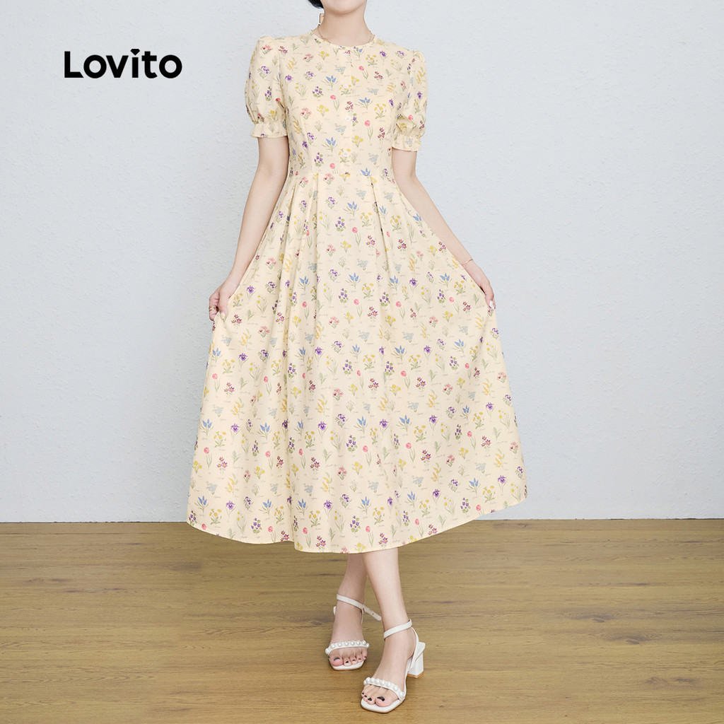 Lovito Vestido Casual com Botões Boa Textura Primavera/verão para Mulheres LBL26039