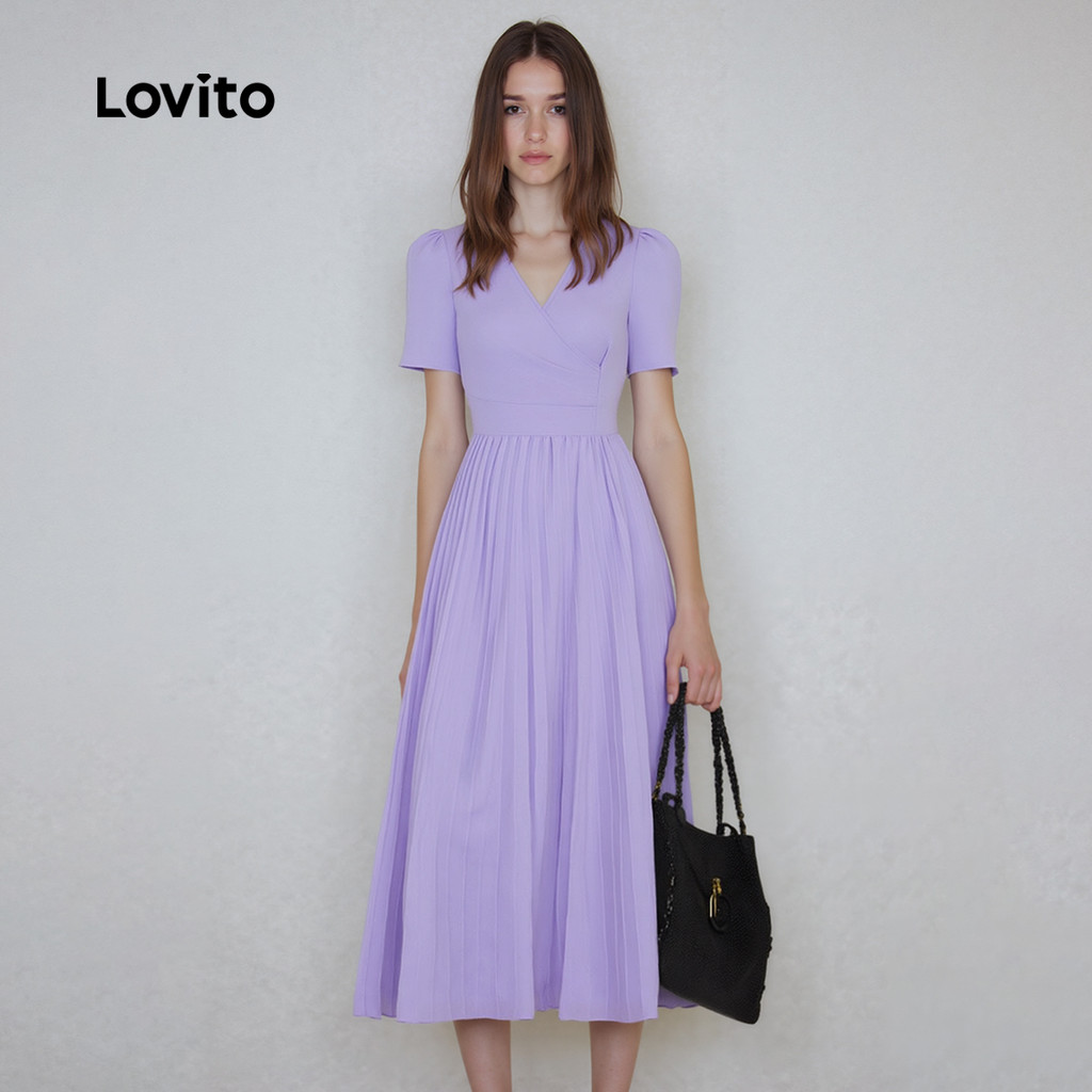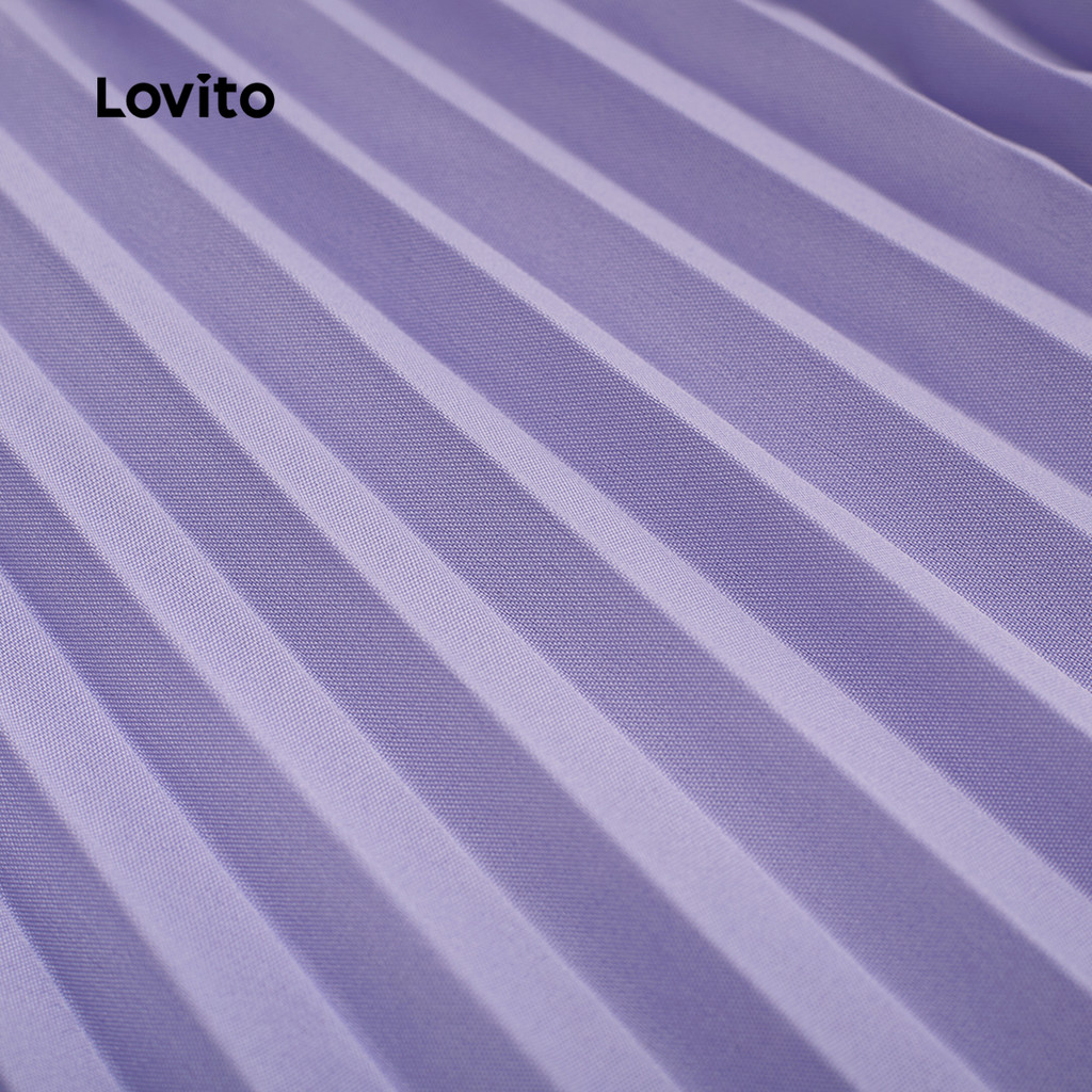 Lovito Vestido Elegante Plissado com Zíper Macio e Confortável Primavera/verão Roxo L137ED032