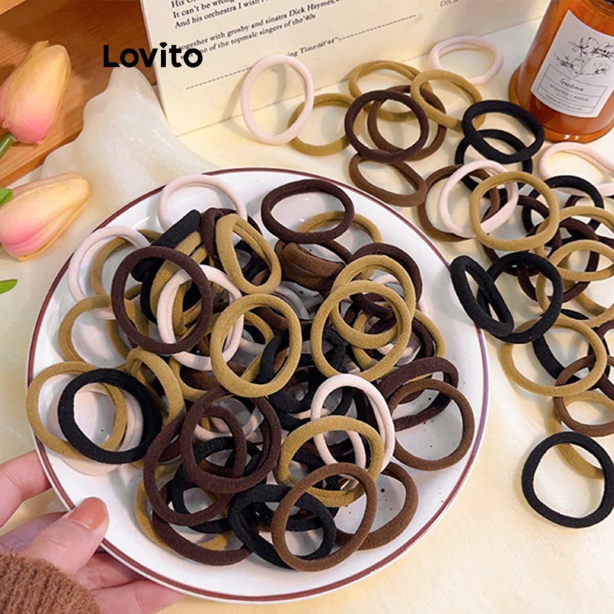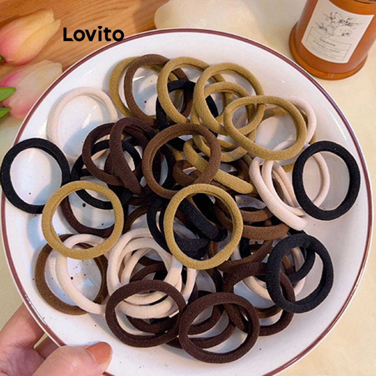 (Trendy) Lovito Casual Elástico de Cabelo Feminino Liso Sem Costura Pacote com 100 Cor Nude LFA08528
