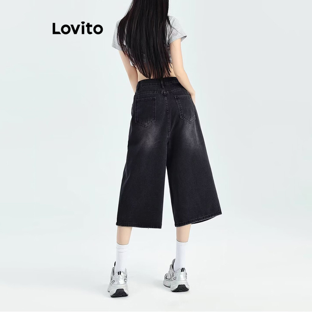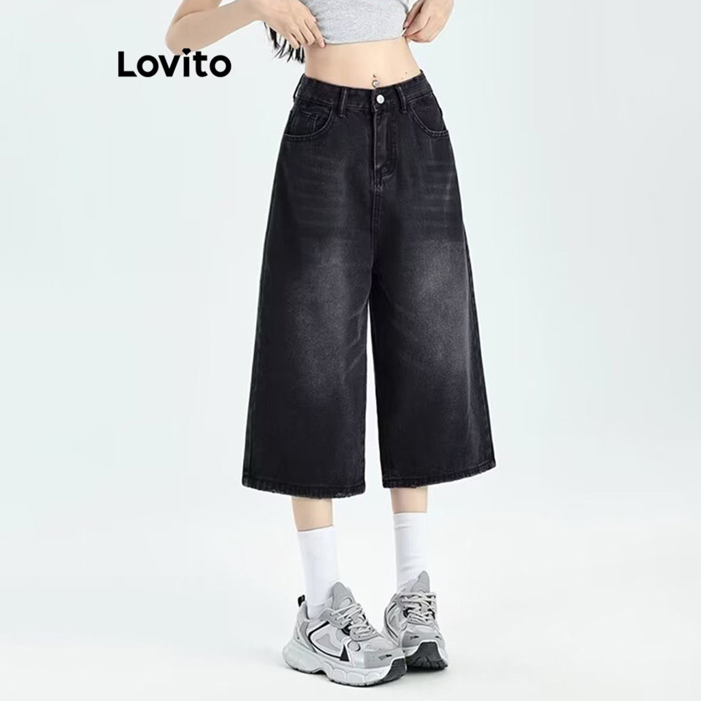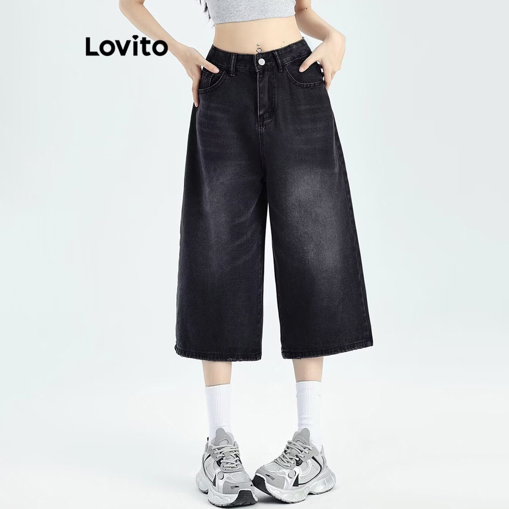 (Trendy2) Lovito Jeans Casuais Jeans Lisos Lavados Para Mulheres LNA74146