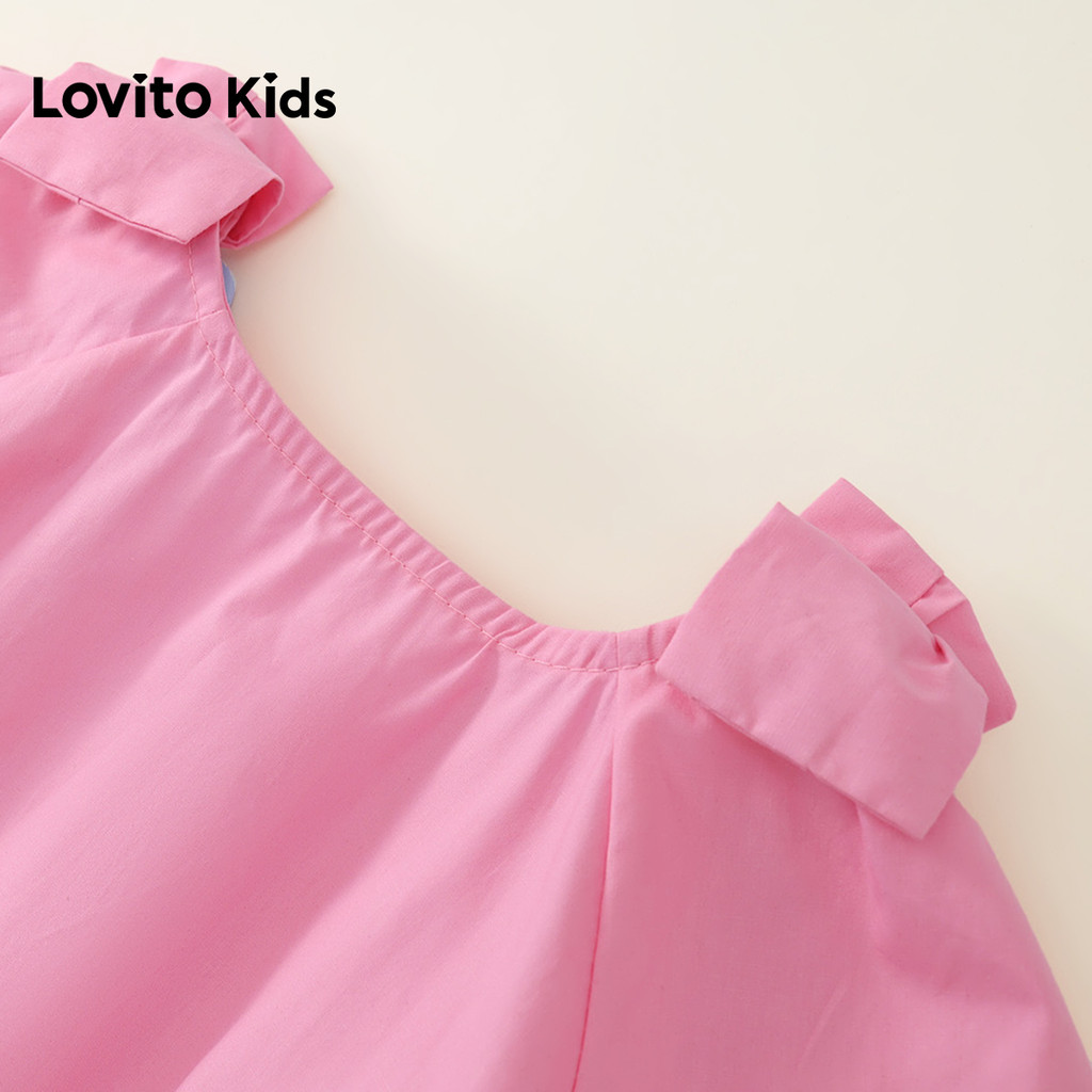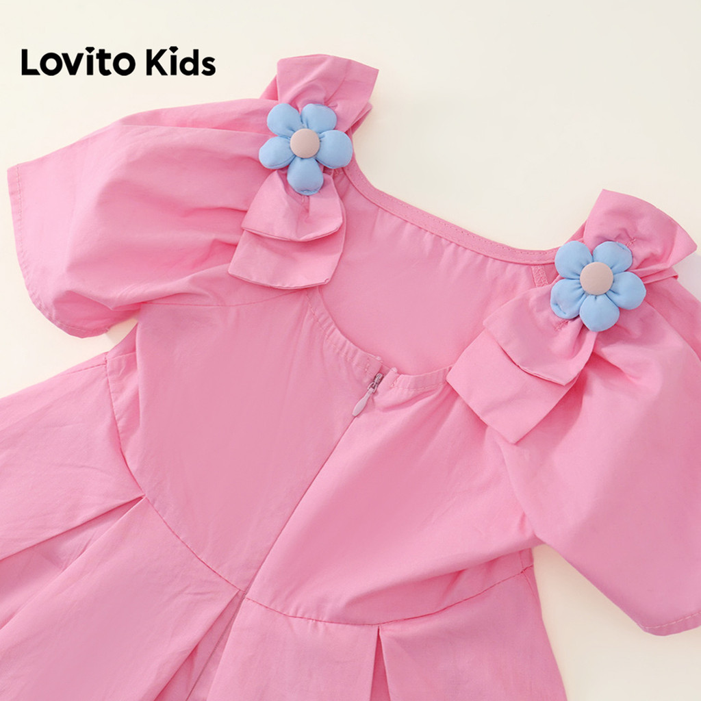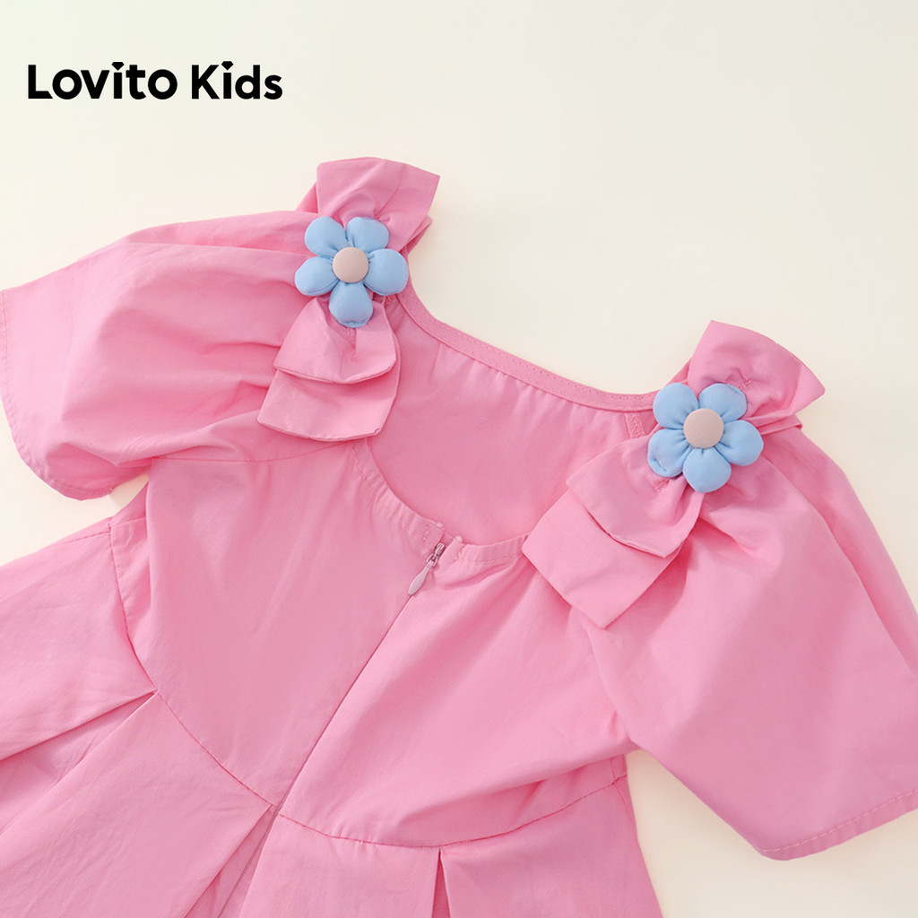 Lovito Kids Vestido Casual com Apliques e Pregas Flores Rosa Claro Primavera/verão para Menina LNL136449