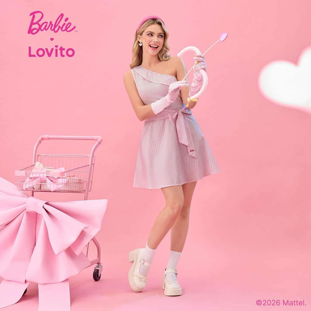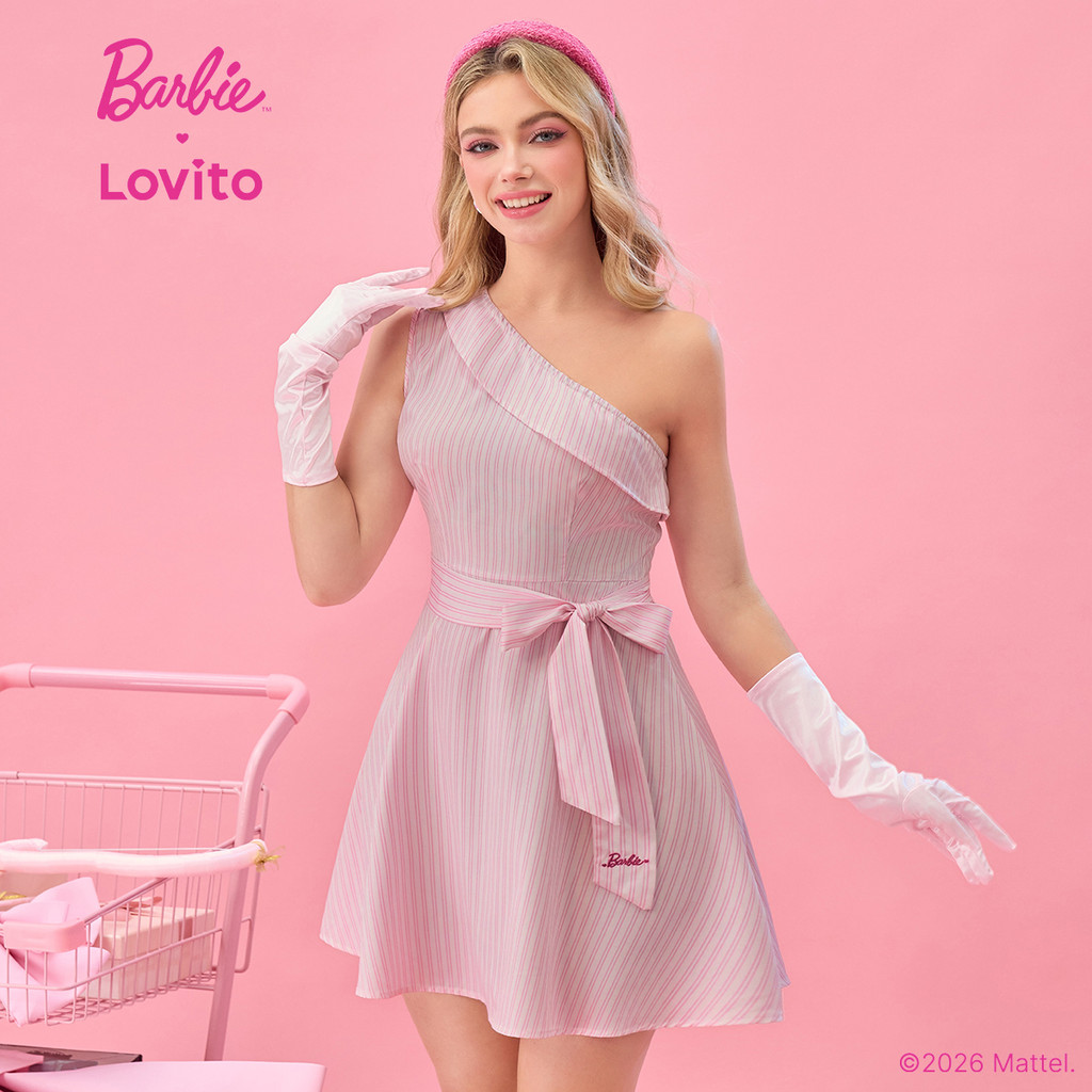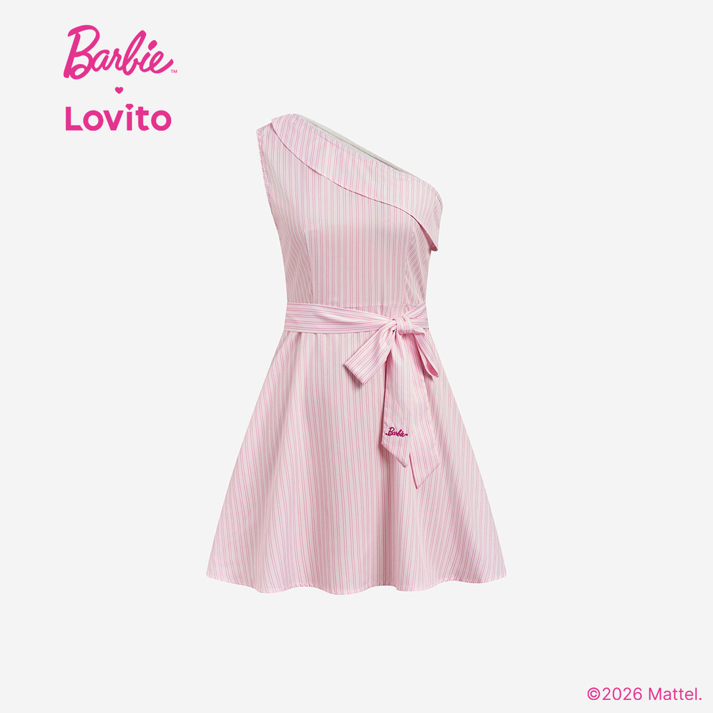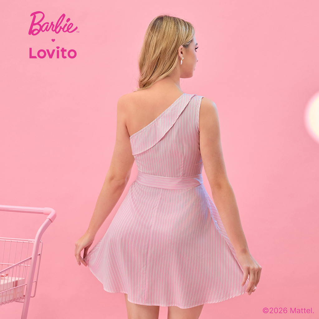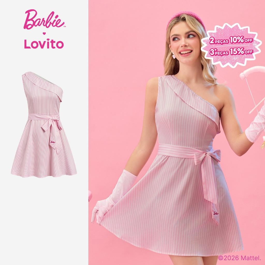 (New arrival) Barbie™ X Lovito Vestido Casual Gravata Frontal Assimétrico Primavera/Verão Mulheres DRBL2PAD050