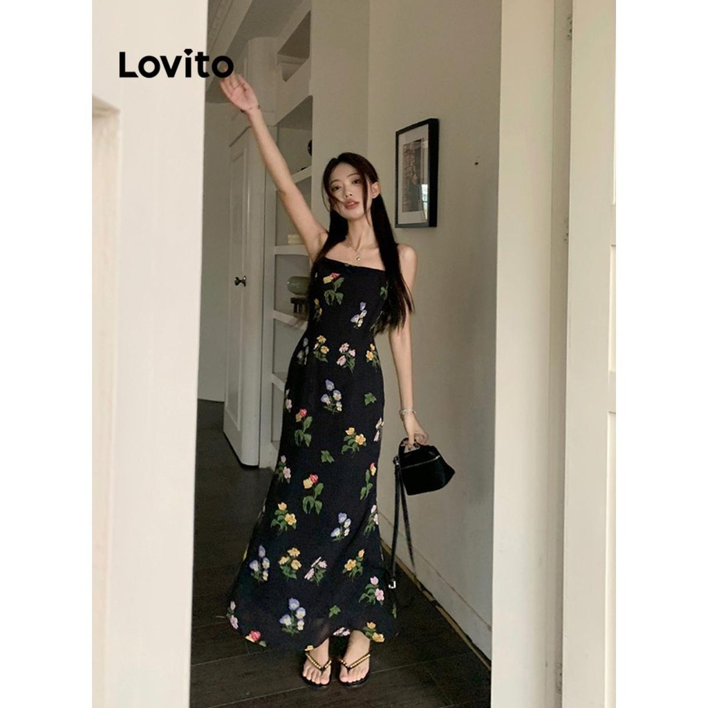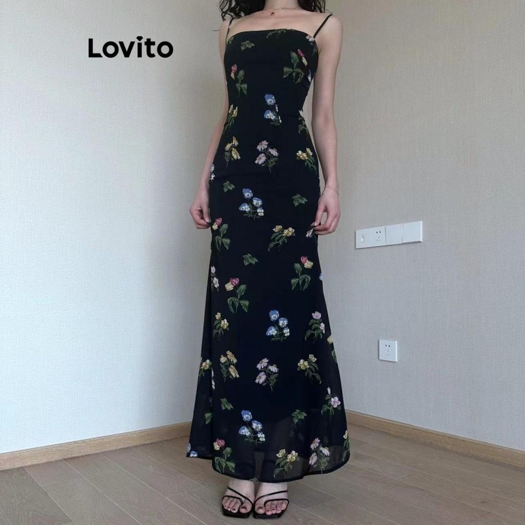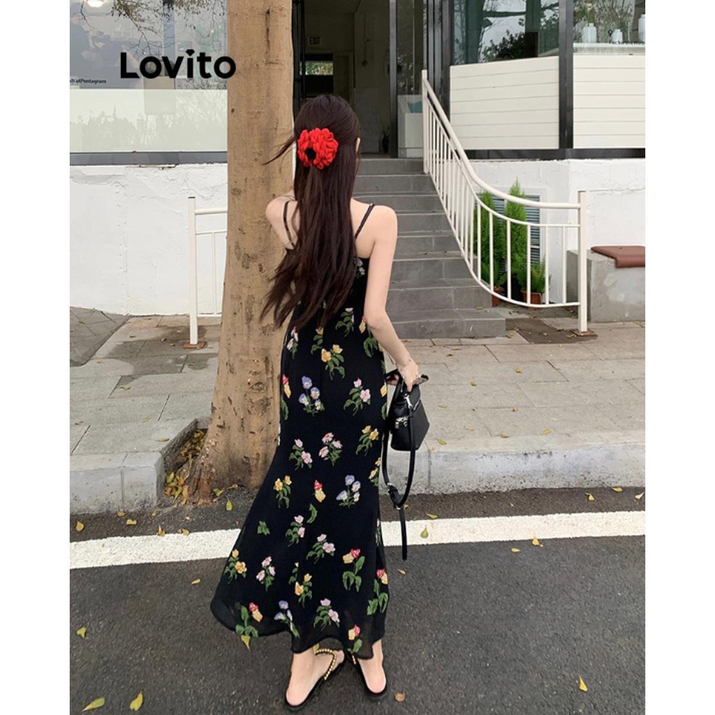(Trendy) Lovito Vestido casual floral com renda para mulheres LNE65039