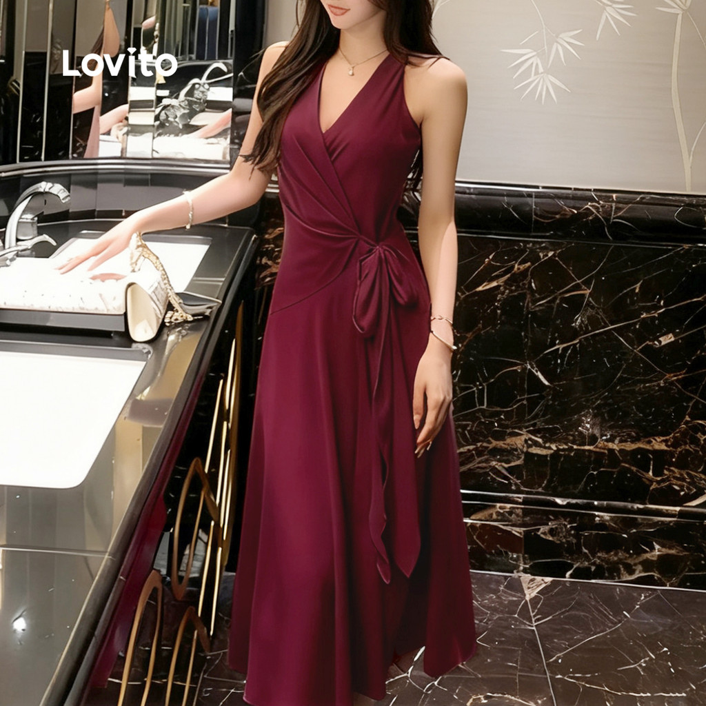 Lovito Vestido Elegante Envolvente com Laço de Renda Primavera/verão Vestido Claret L155ED1064\2