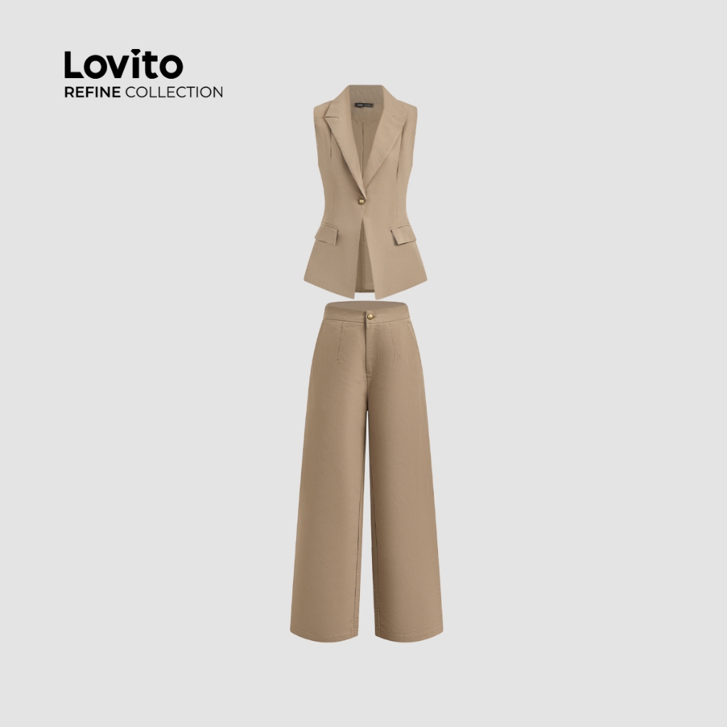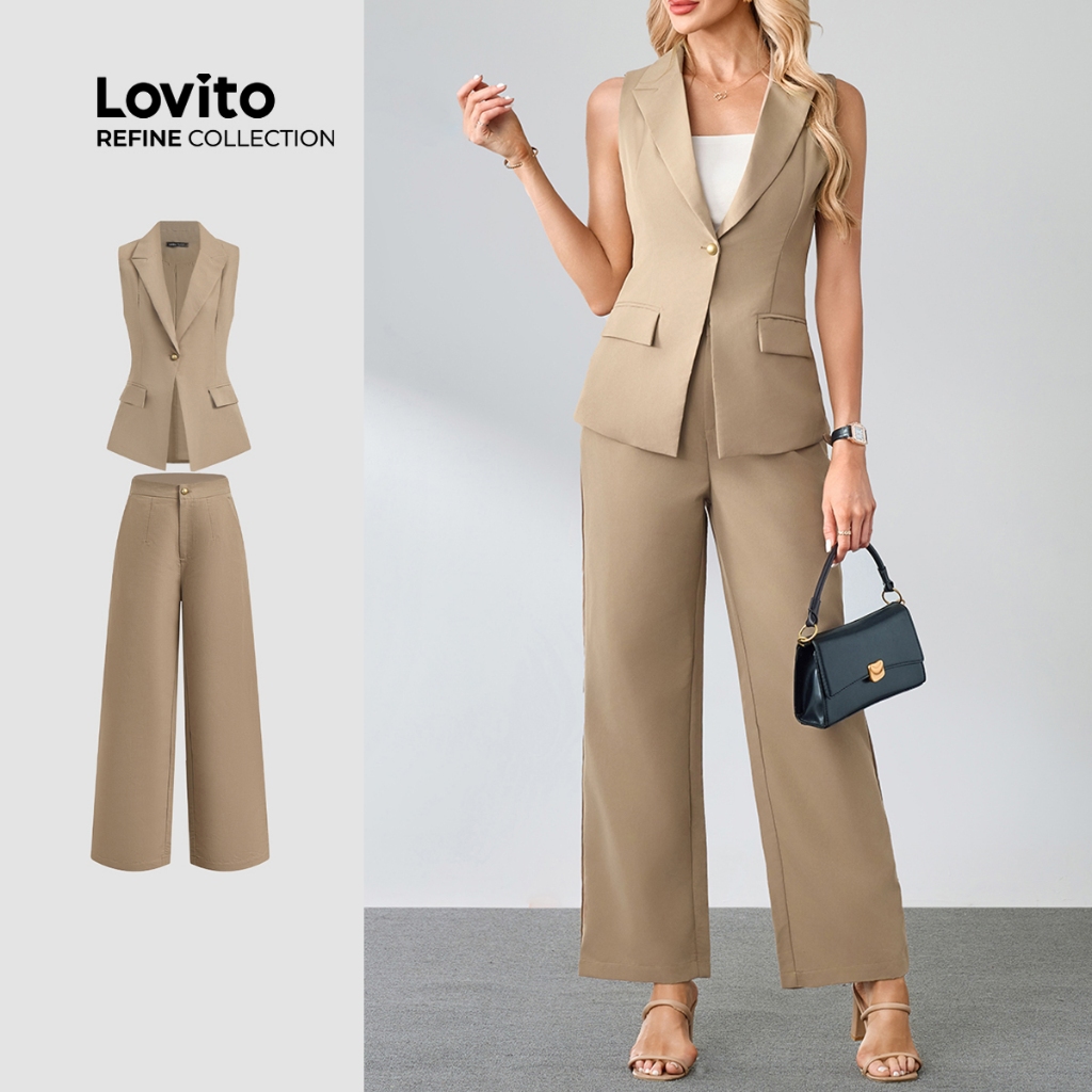 (Trendy) (Lovito Refine) Tops ou calças de bolso falso simples e elegantes para mulheres LR7LD091