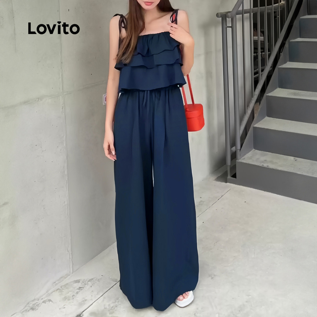 (New) Lovito Blusas ou Calças Casuais com Babados para Primavera/verão para mulheres L143ED251