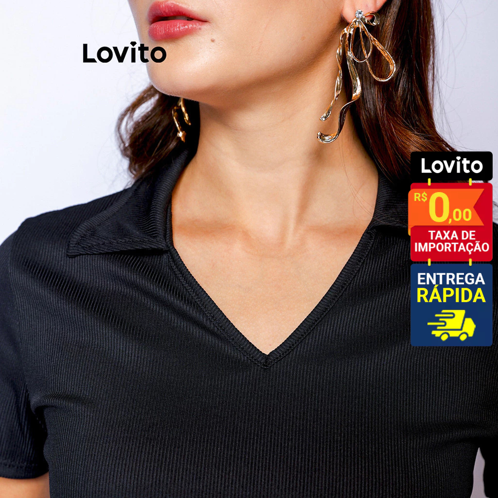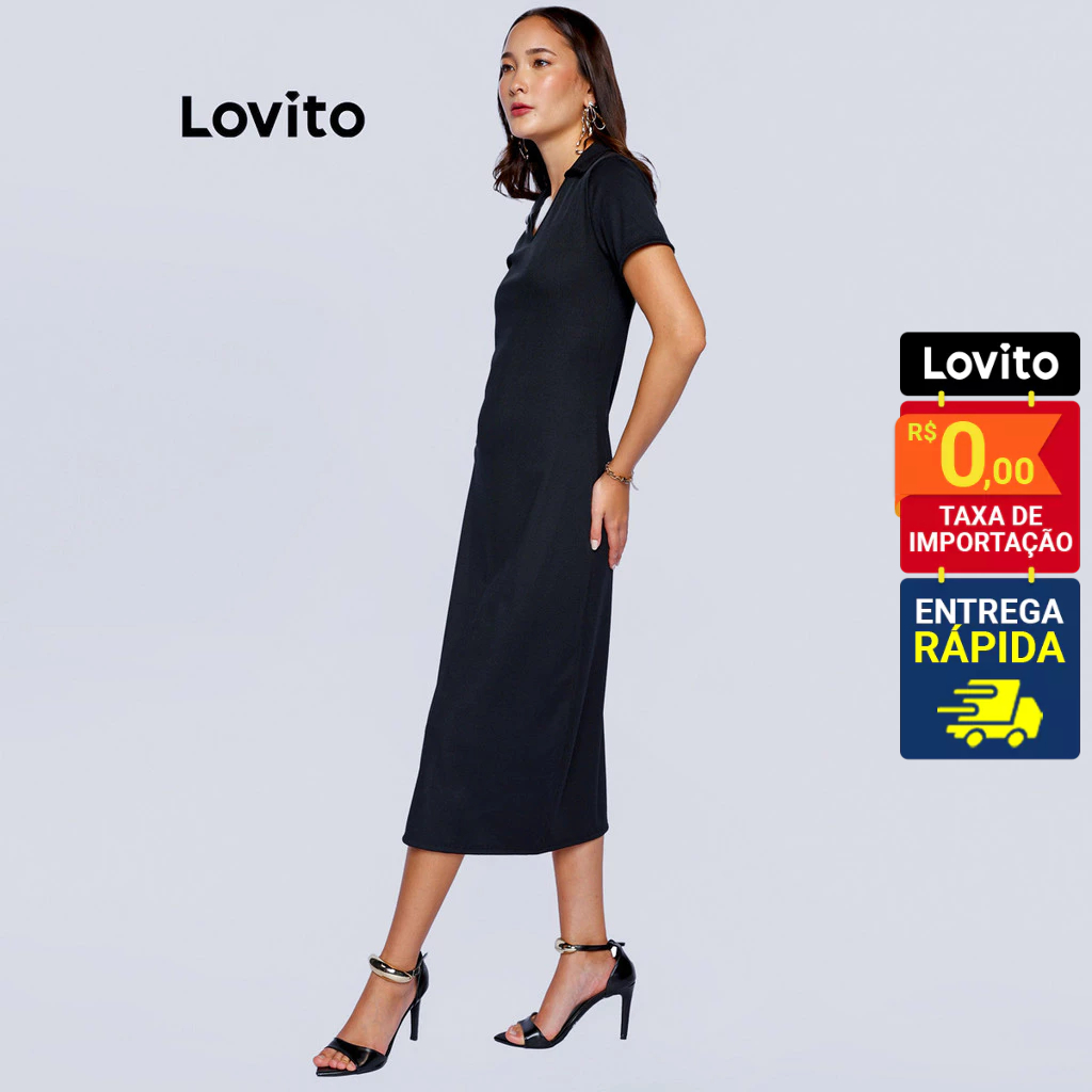 Lovito Vestido Midi Polo Manga Curta Liso Feminino LB460BRL489