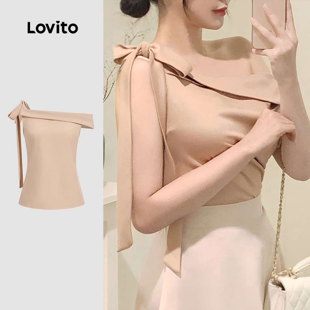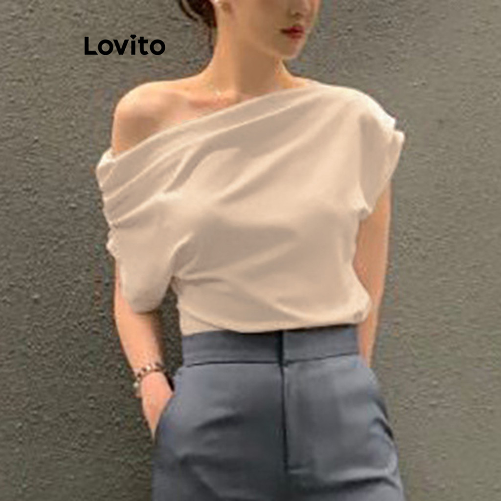 Lovito Blusa Feminina Elegante Plissada Franzida Com Nó Lisa L100MD491