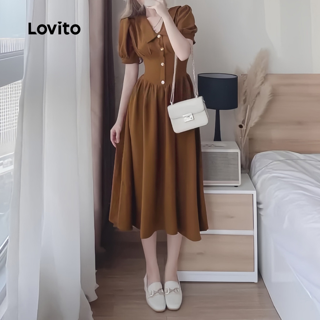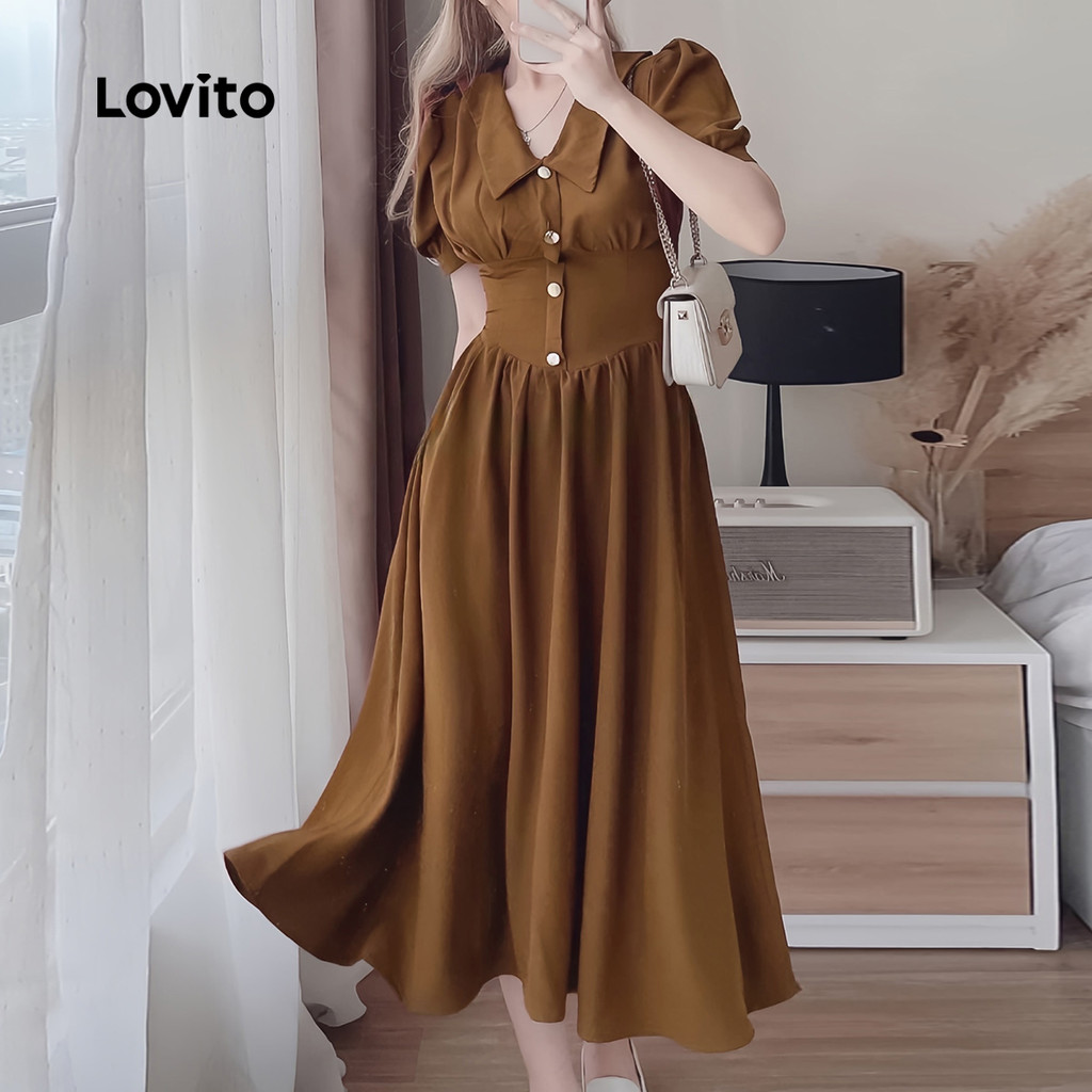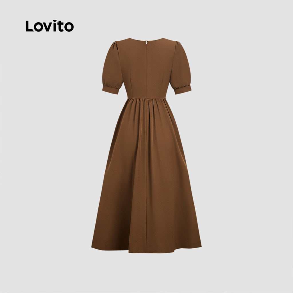 Lovito Vestido Elegante Botão Primavera/verão Marrom para Mulheres L178ED407