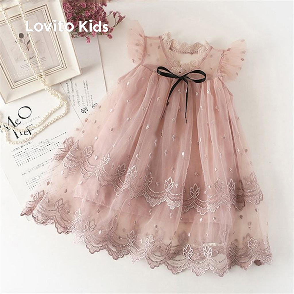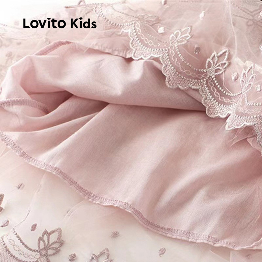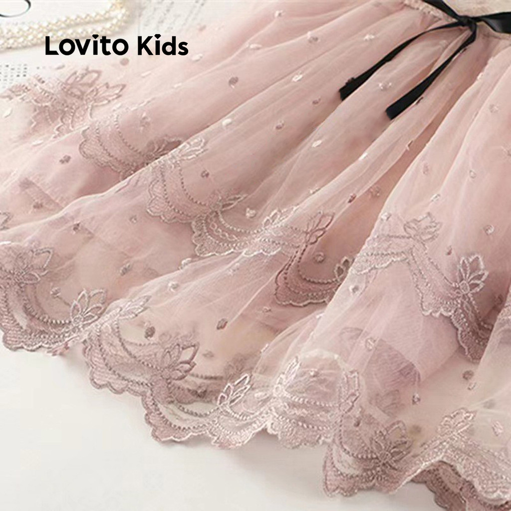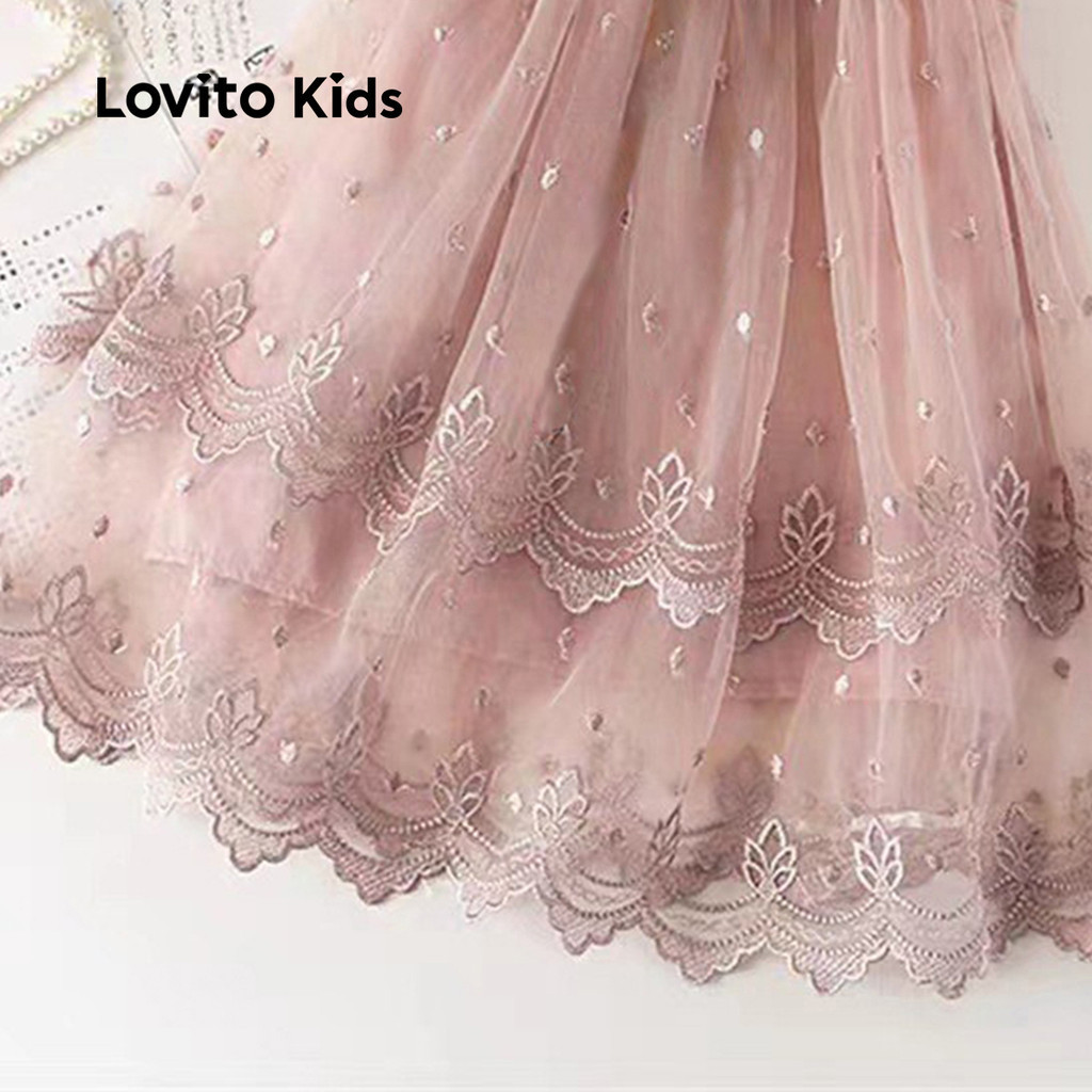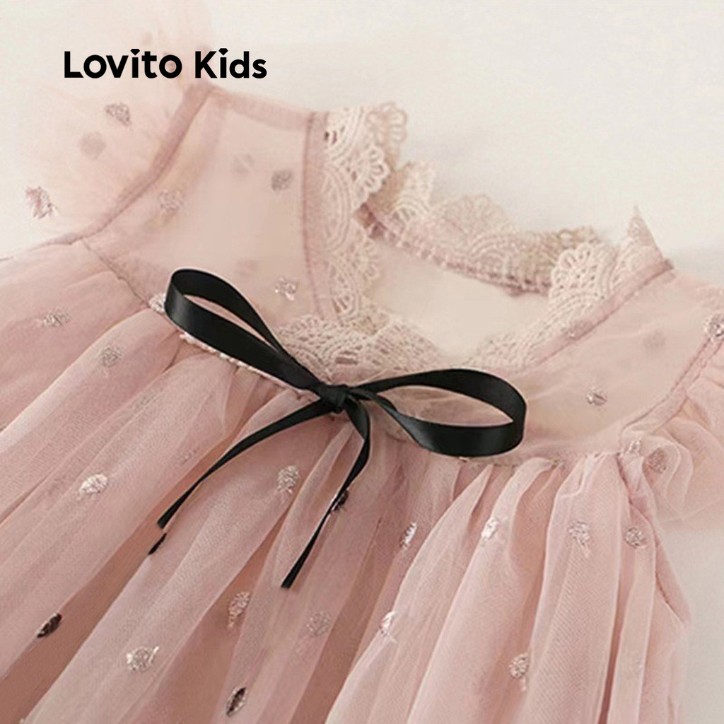 Lovito Vestido Festa Casual Infantil Contraste De Malha E Cadarço Vestido Rosa Primavera/verão Para Meninas LNL115133