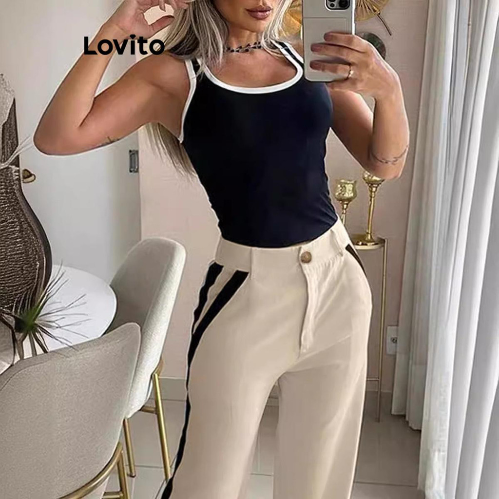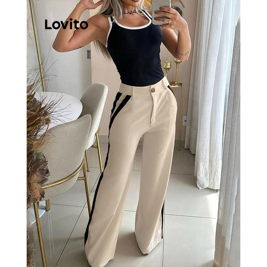 Live Hosts' pick Conjuntos elegantes de calças com encadernação em contraste simples para mulheres LNL67157