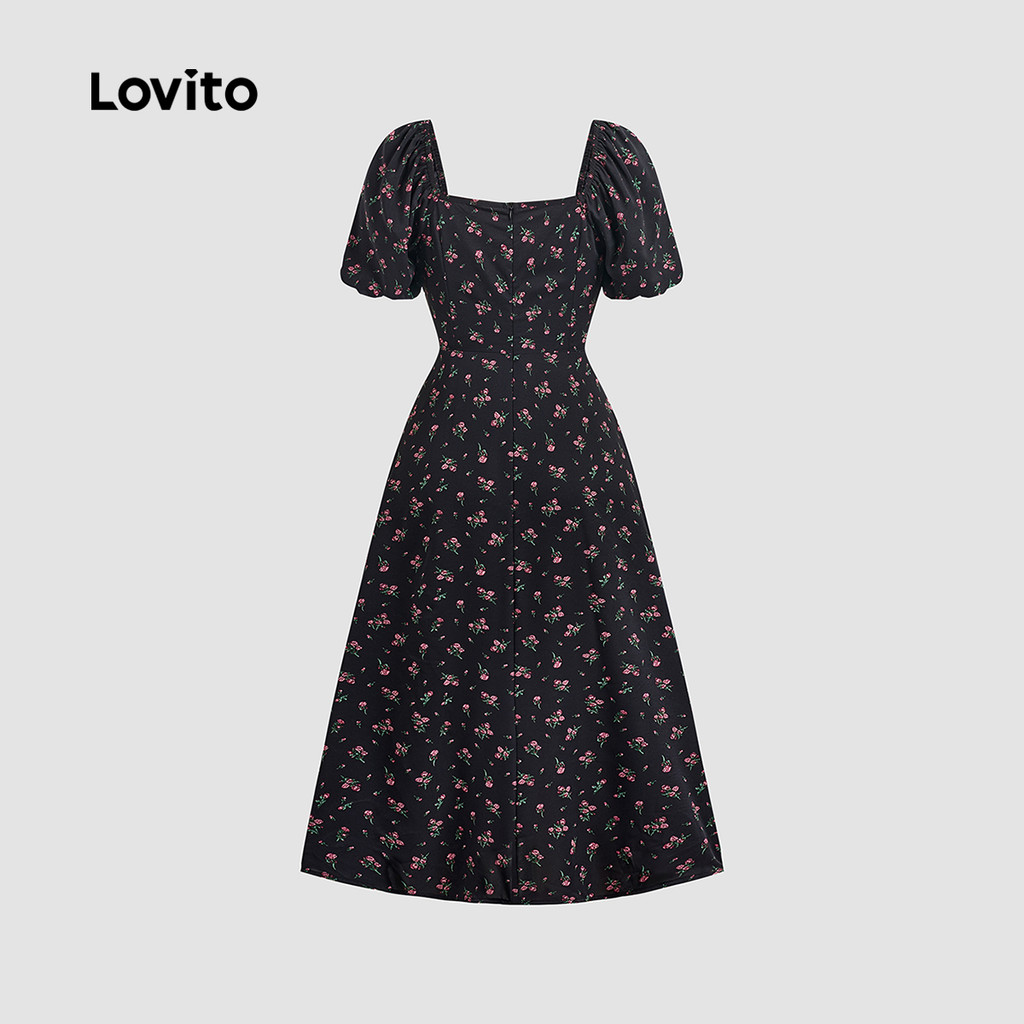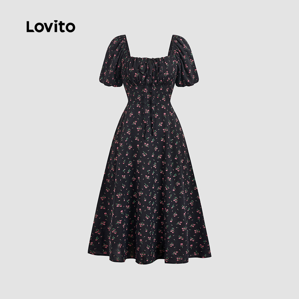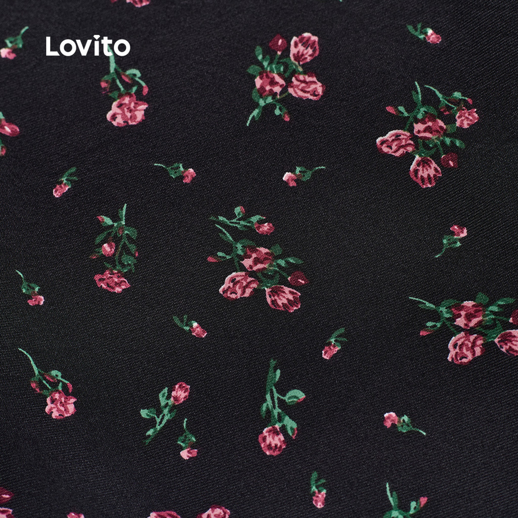 Lovito Vestido Elegante de Renda Estilo Resort Primavera/verão Preto para mulheres LBL27022