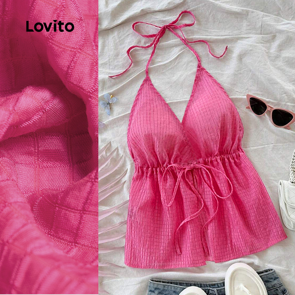 (New) Lovito Blusa Casual com Babados Na Barra Primavera/verão Top Rosa para mulheres L150ED689