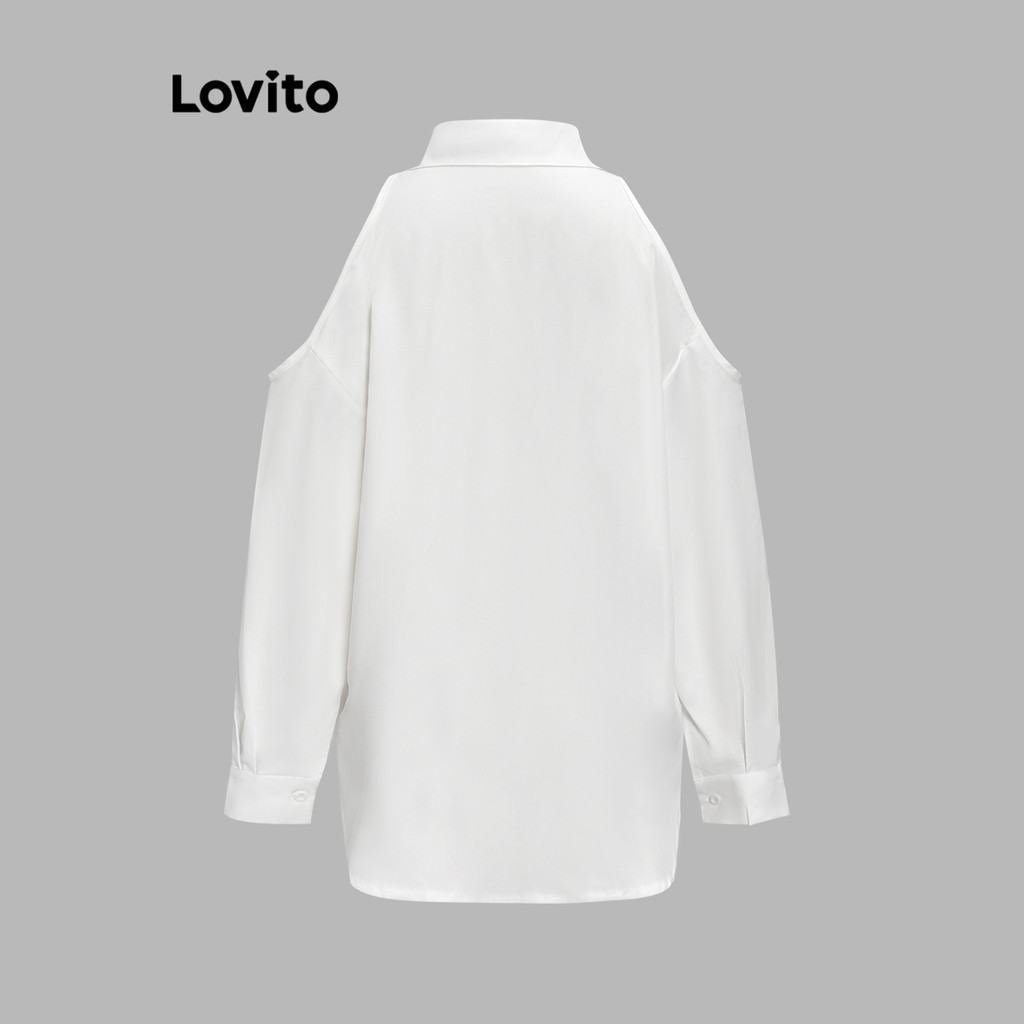 Lovito Blusa Feminina Casual Liso com Recortes em Branco - L67AD001
