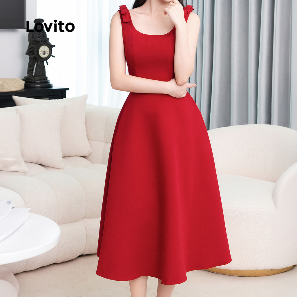 Lovito Vestido Casual Festa Estampa Borboletas Modelo Estruturado Primavera/verão Vermelho Para Mulheres L154ED278