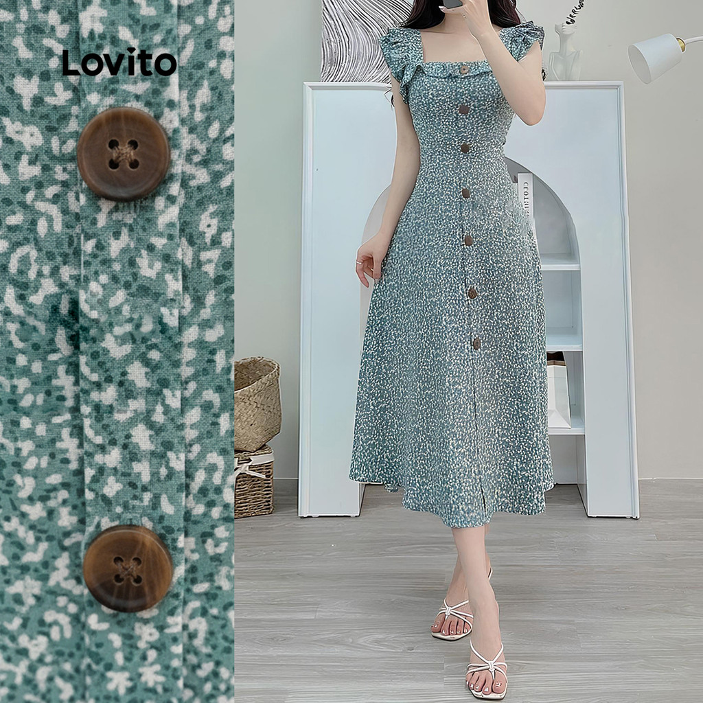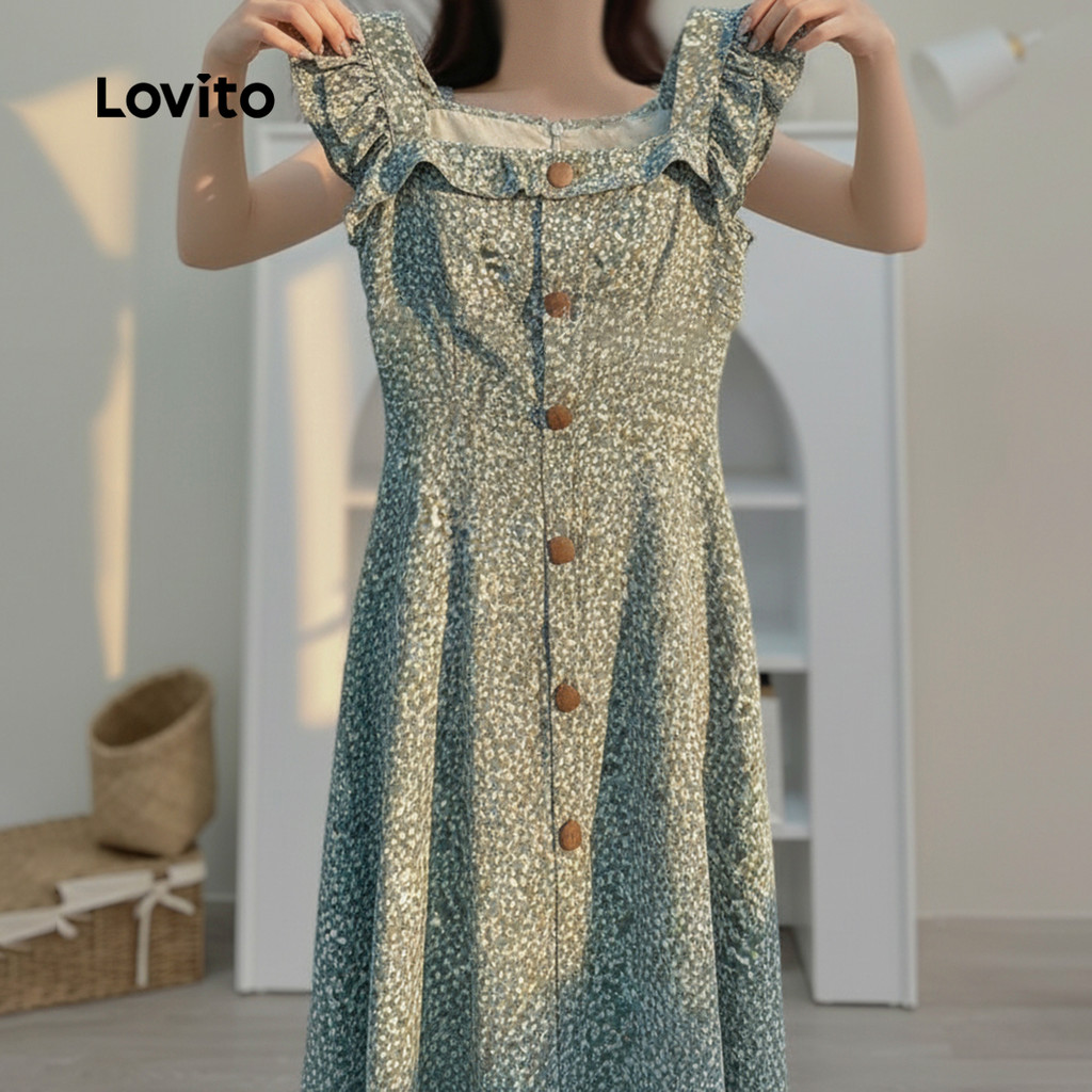 Lovito Vestido Casual de Botões para Mulheres Vestido de primavera/verão L161LD037