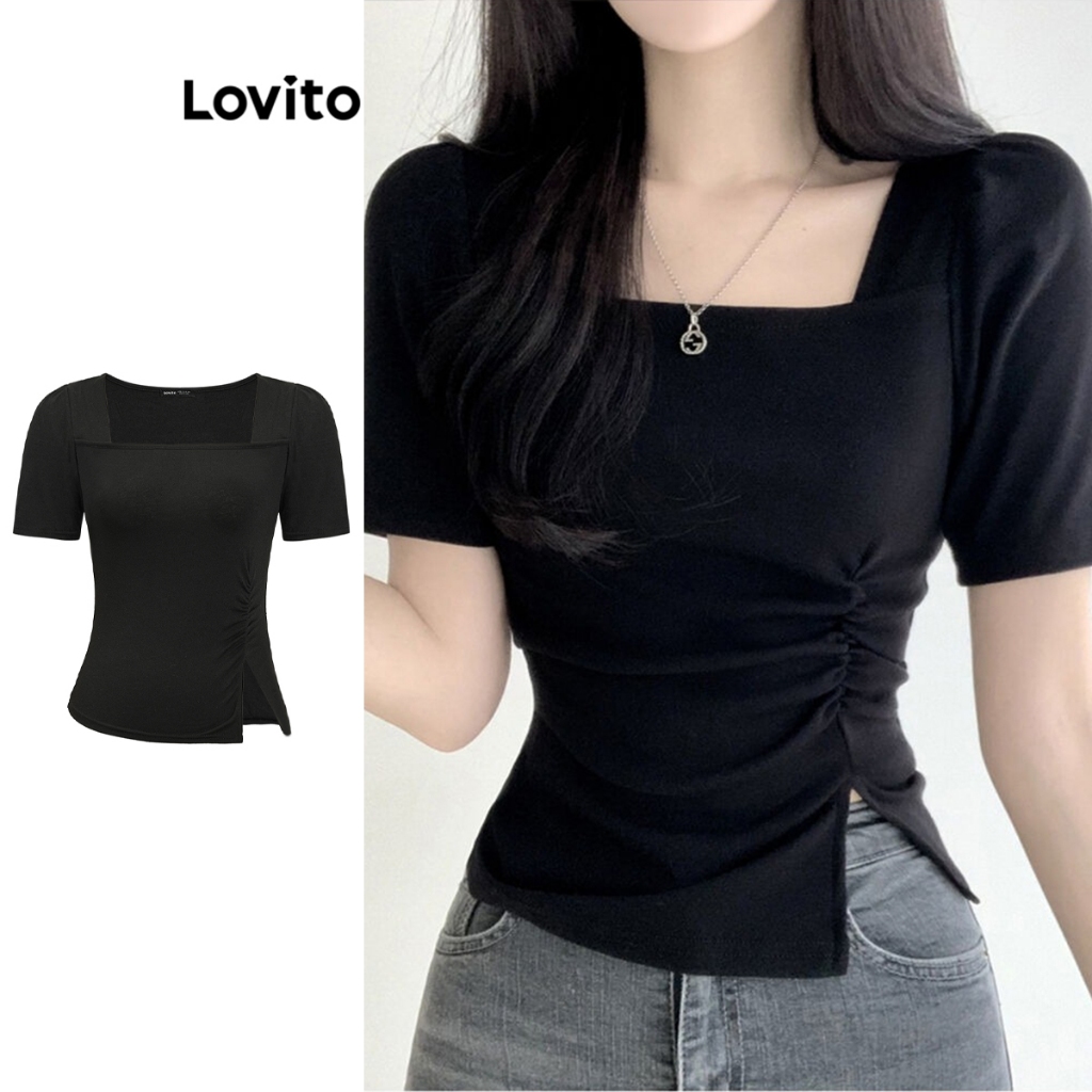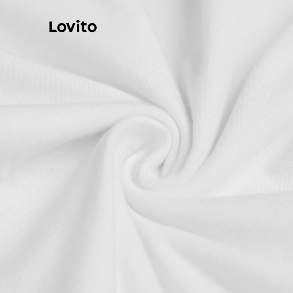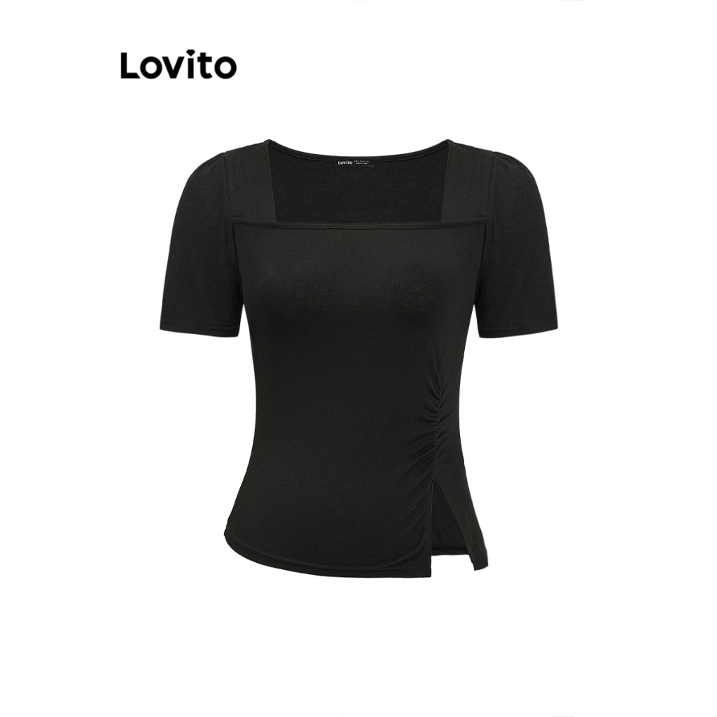 (trendy3)Lovito Camiseta Elegante Verão Verão Dividida Para Mulheres L91ED094 (Multicolorido)