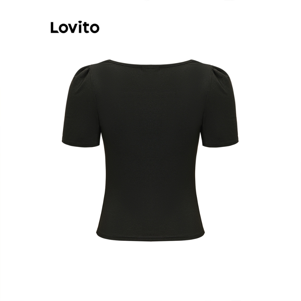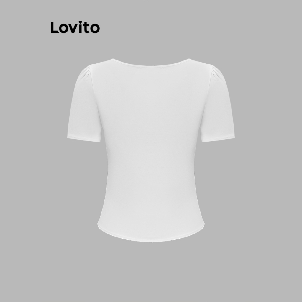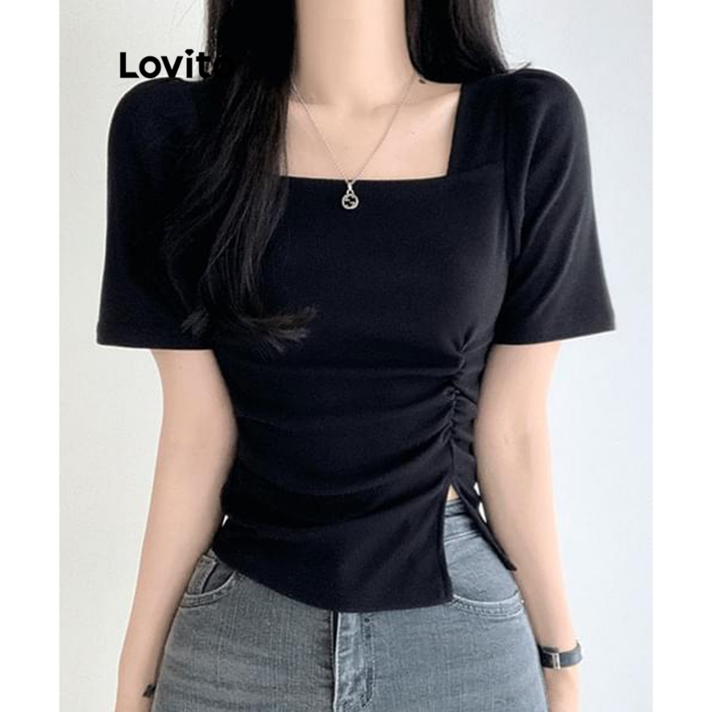(trendy3)Lovito Camiseta Elegante Verão Verão Dividida Para Mulheres L91ED094 (Multicolorido)