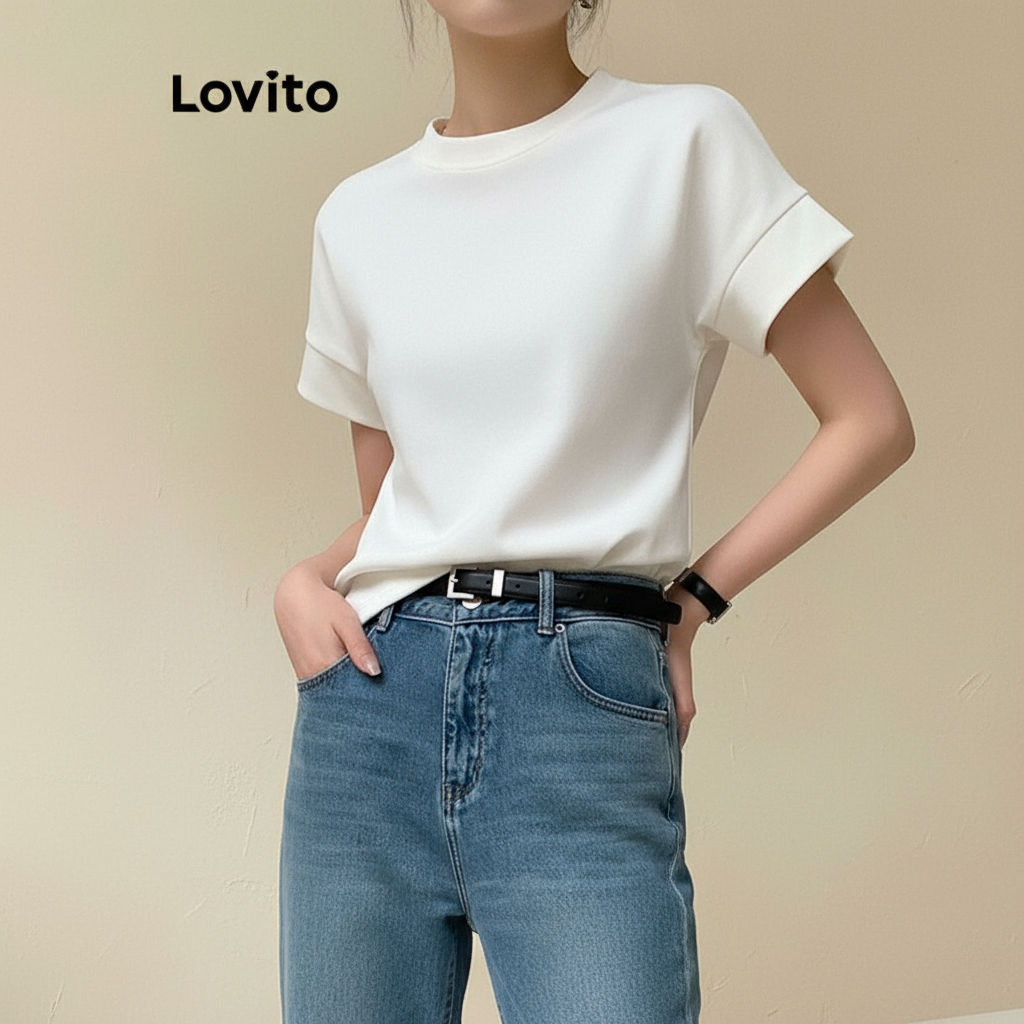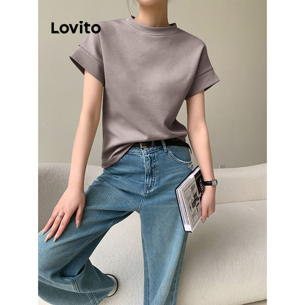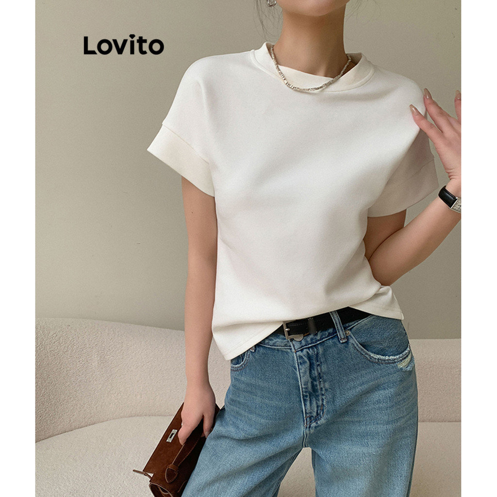 Lovito Camiseta Feminina Casual Verão com Encadernação Contraste LNE40575 (Multicolorida)