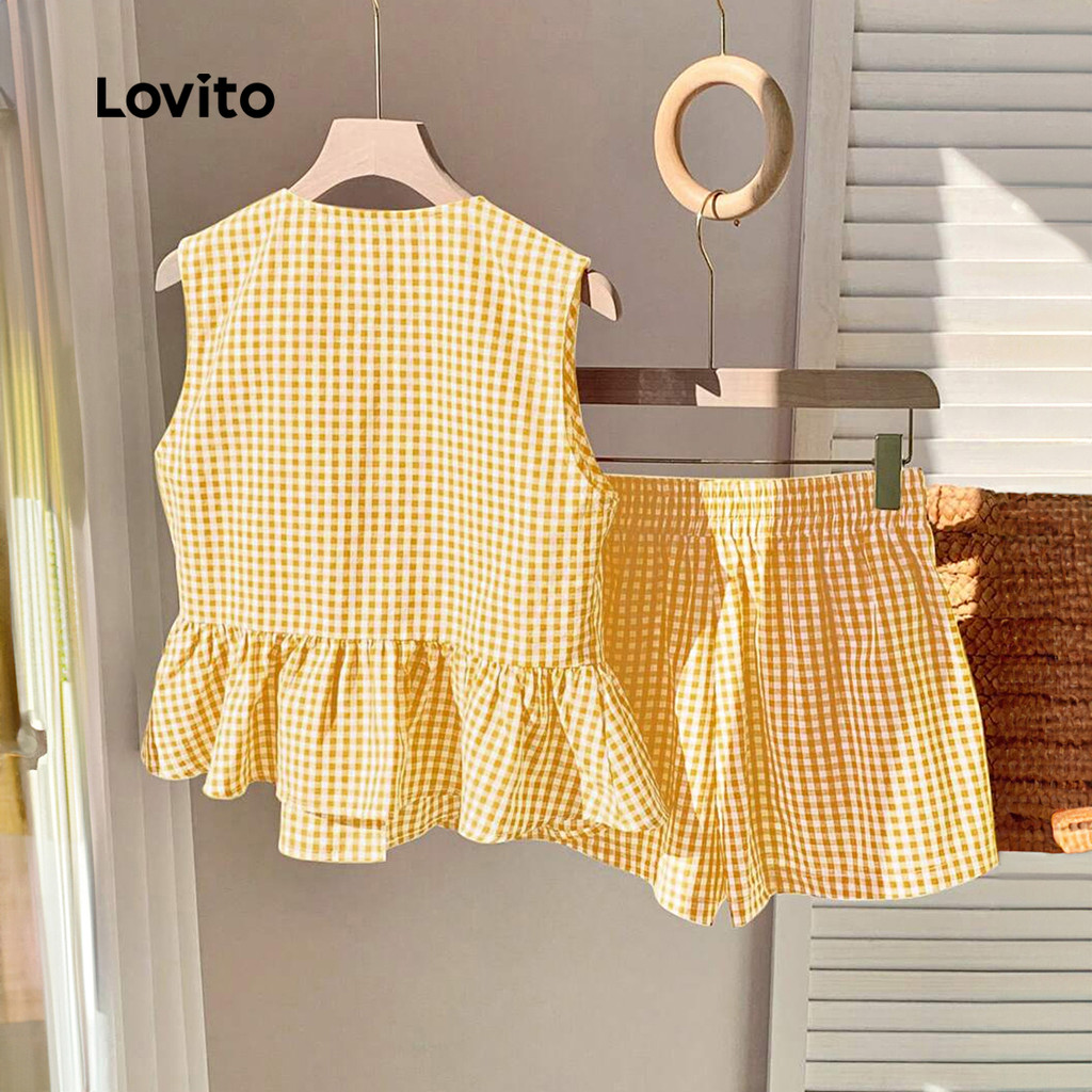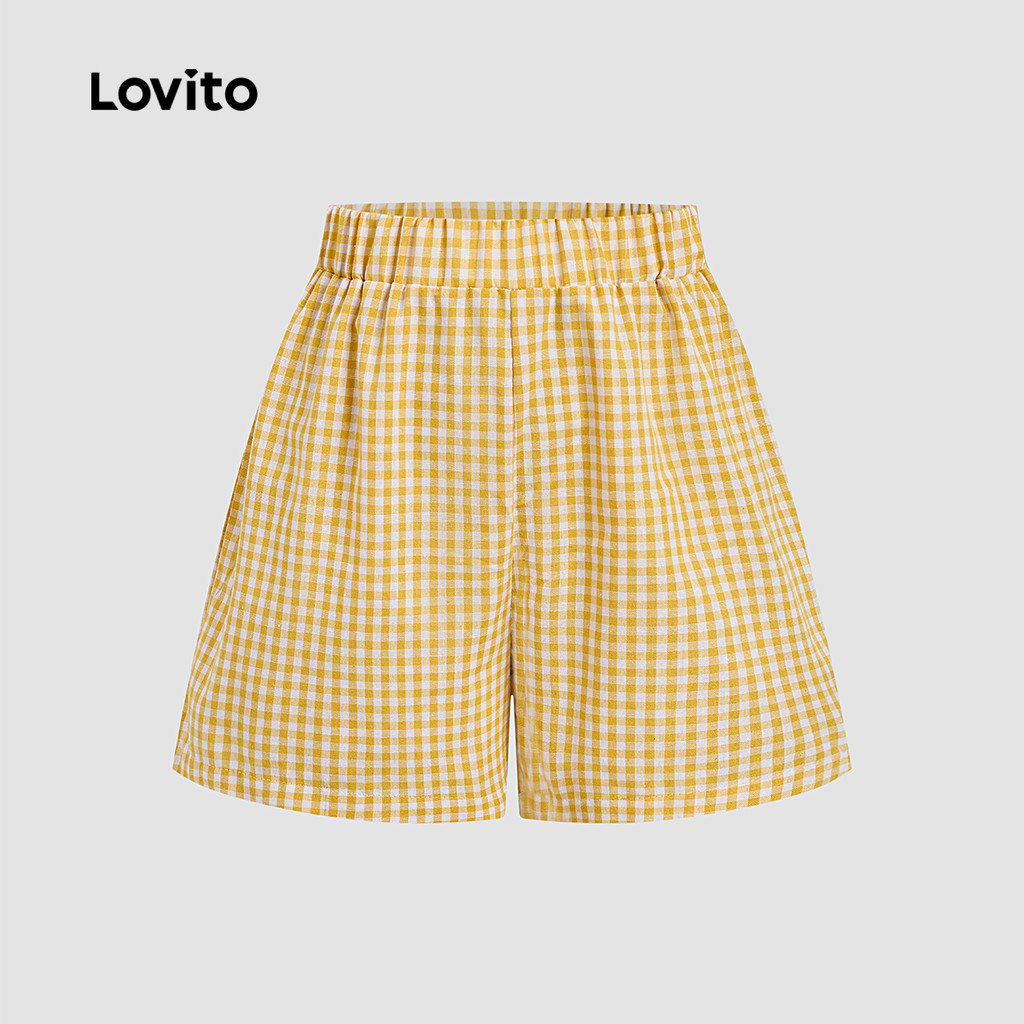 Lovito Blusas ou Calças Casuais com Atacador Primavera/verão Top Amarelo Tops ou Calças para Mulheres L154LD122