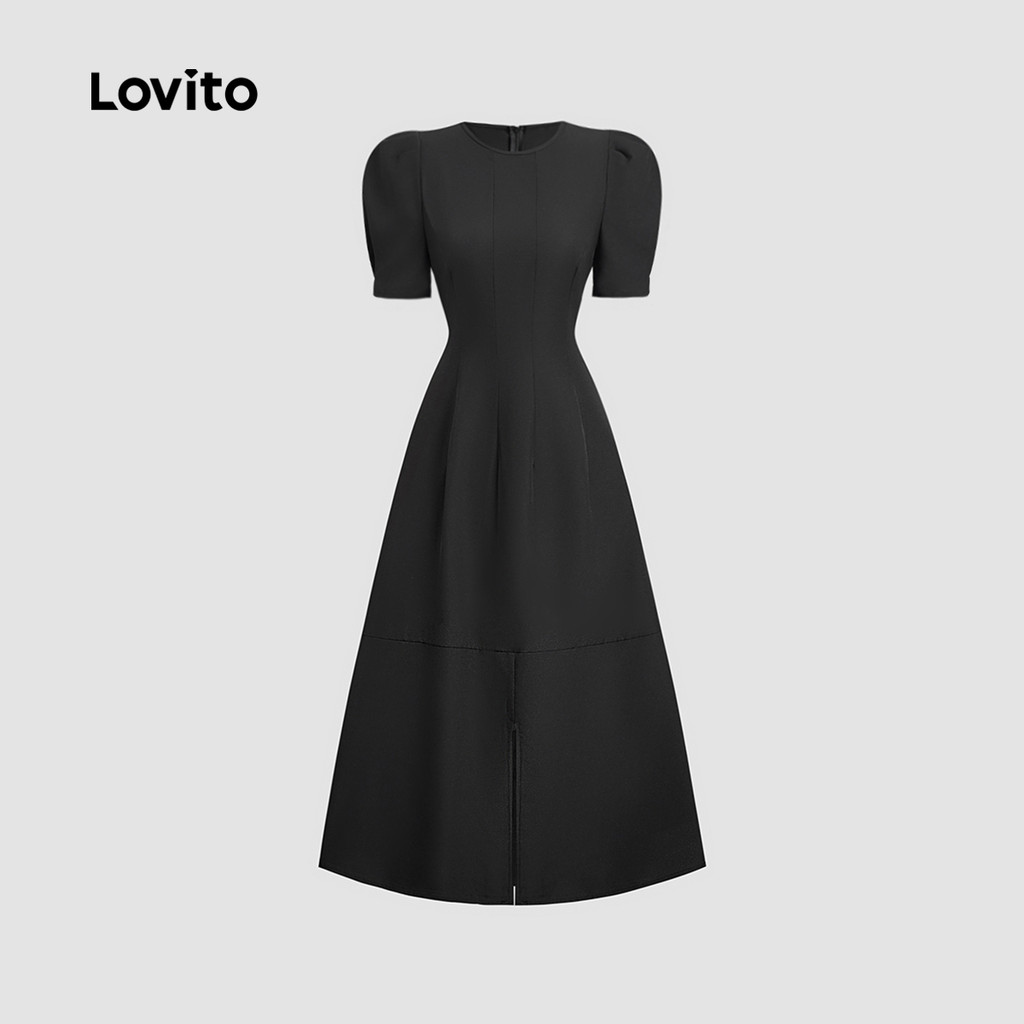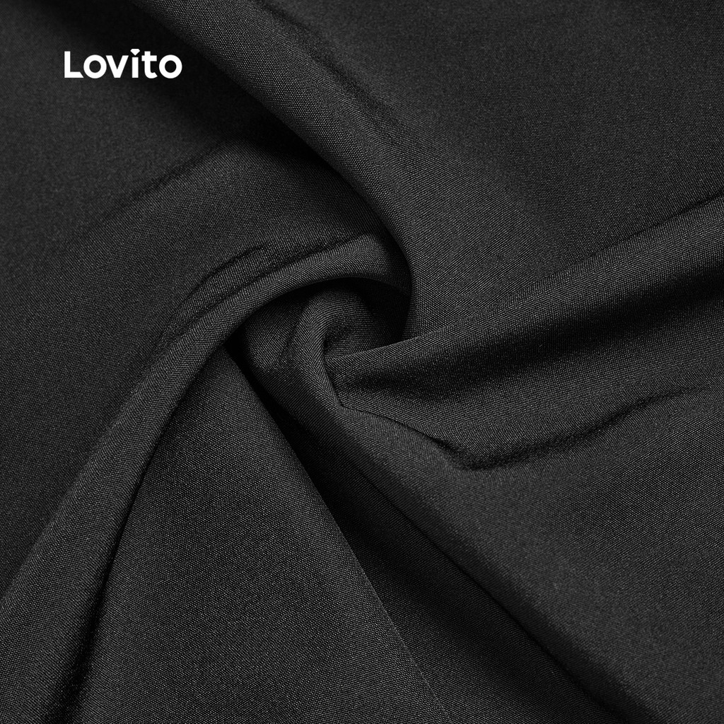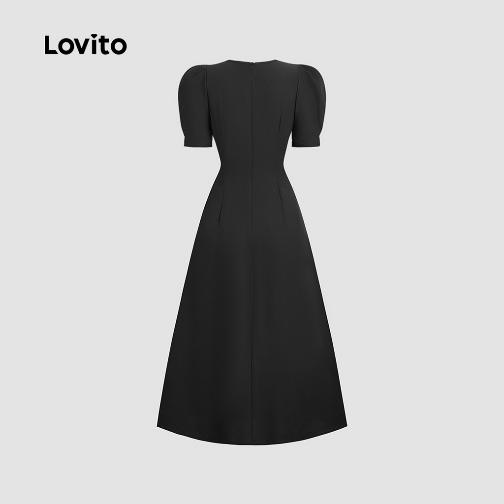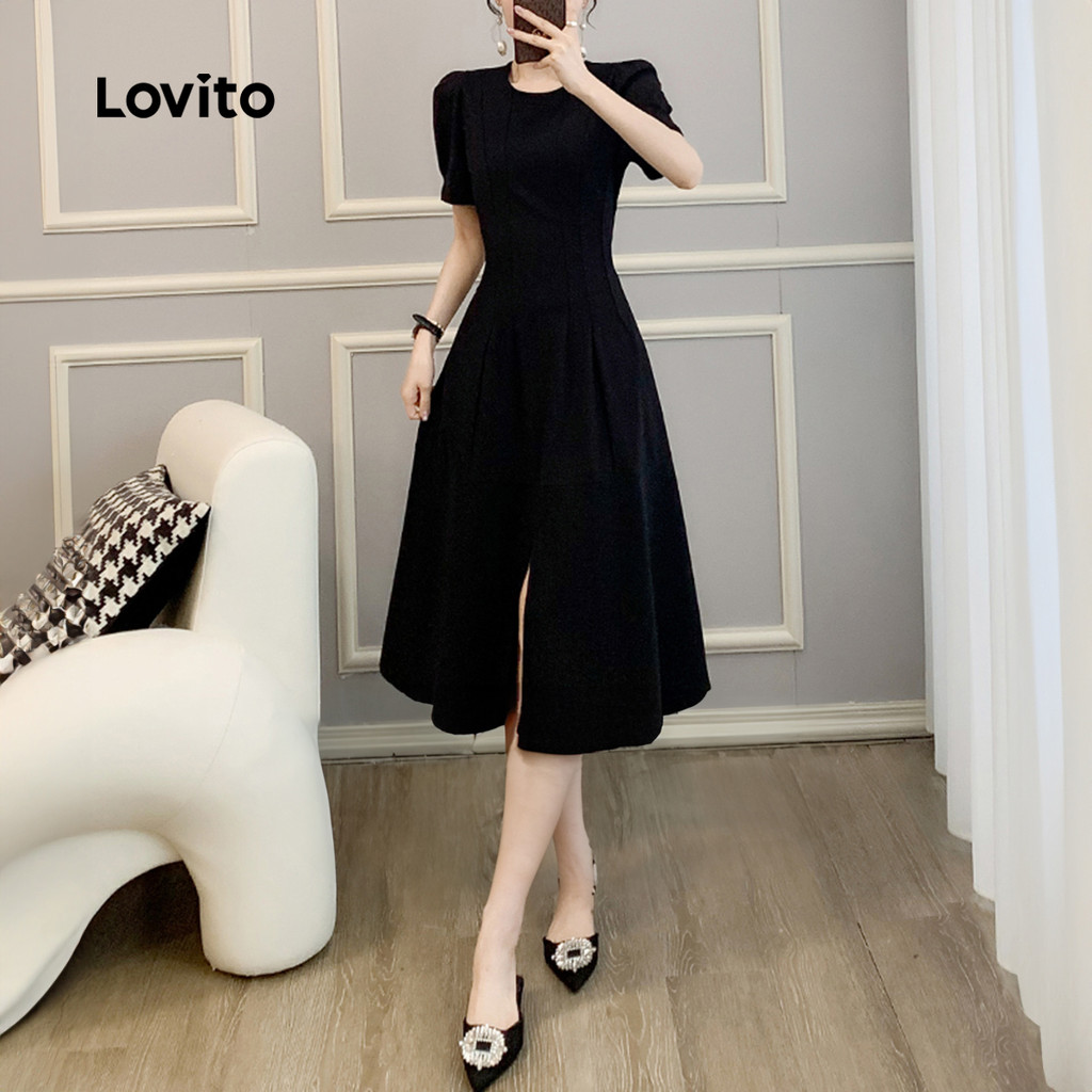 Lovito Vestido Elegante com Divisão Estrutura de Linha Primavera/verão Vestido Preto para mulheres L155AD1566