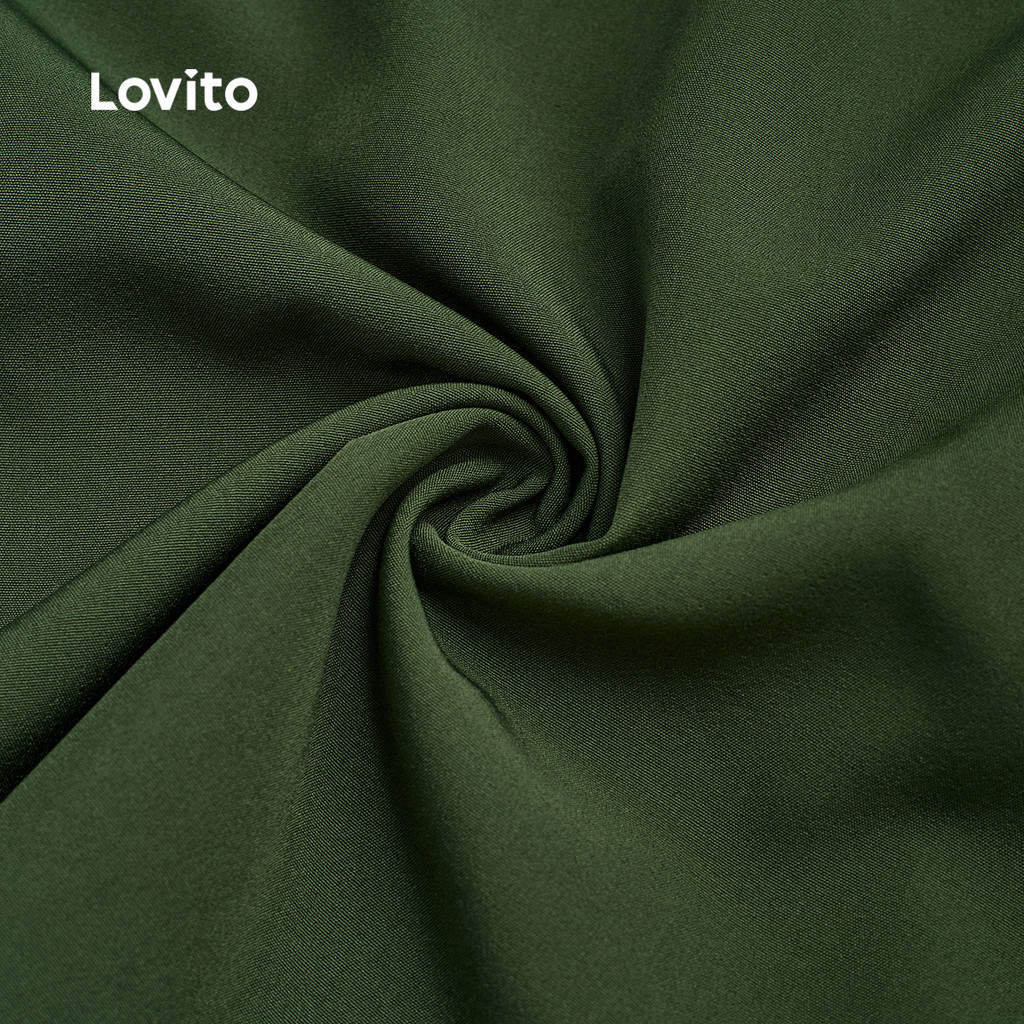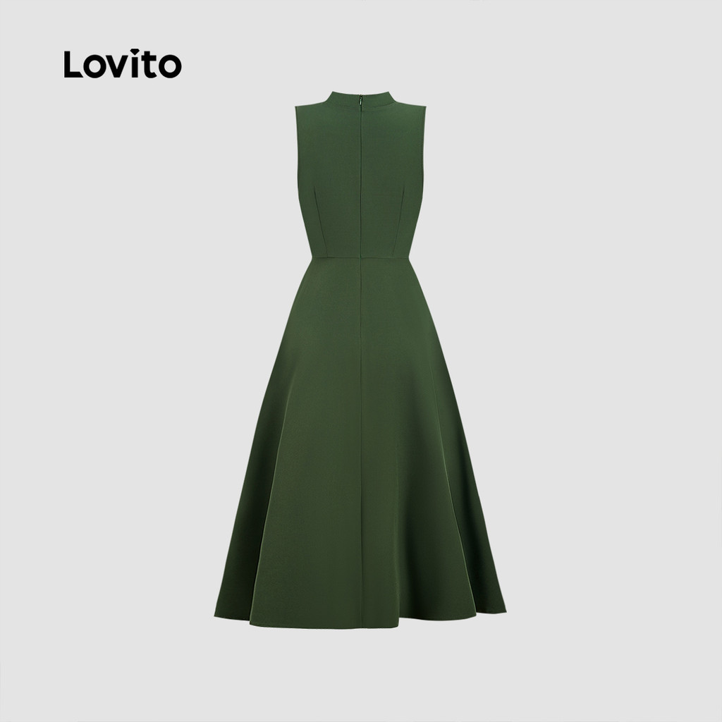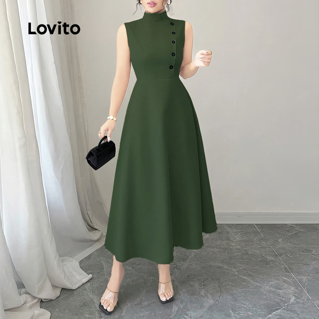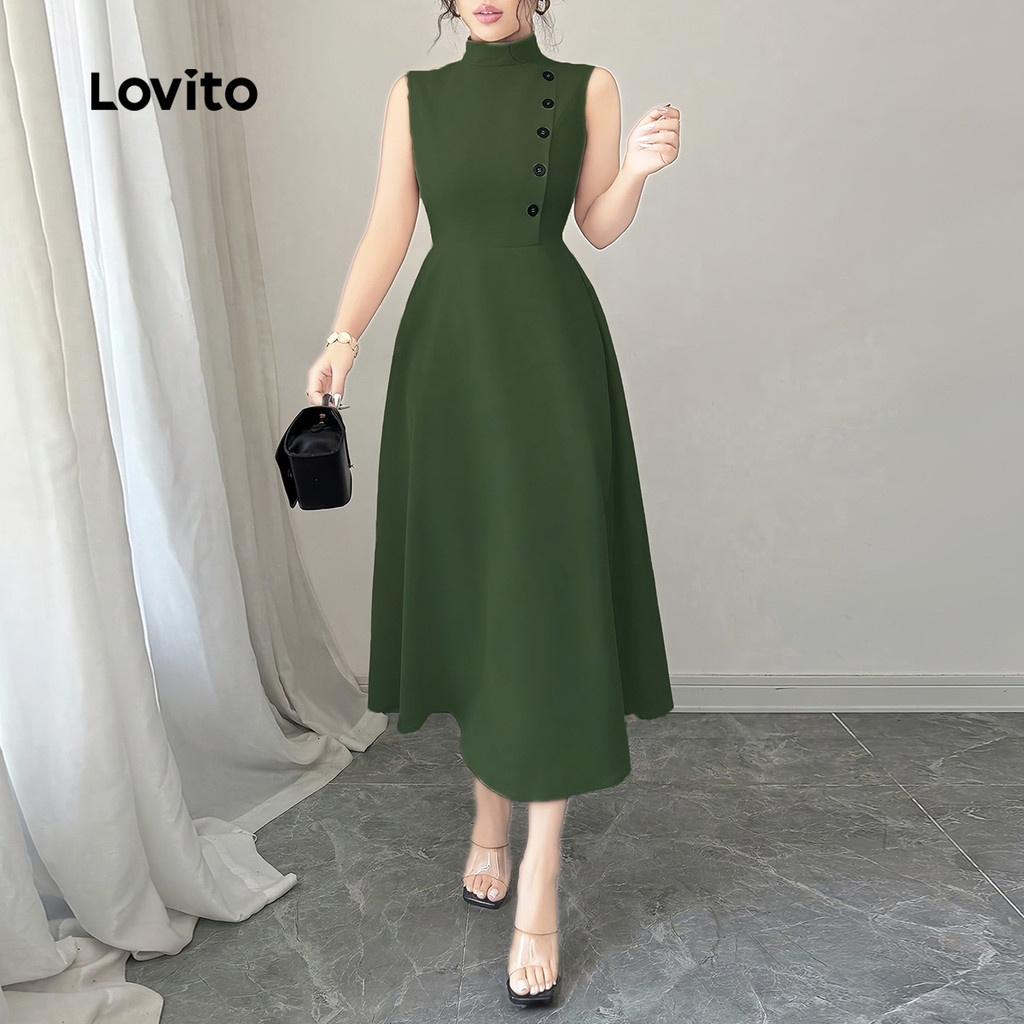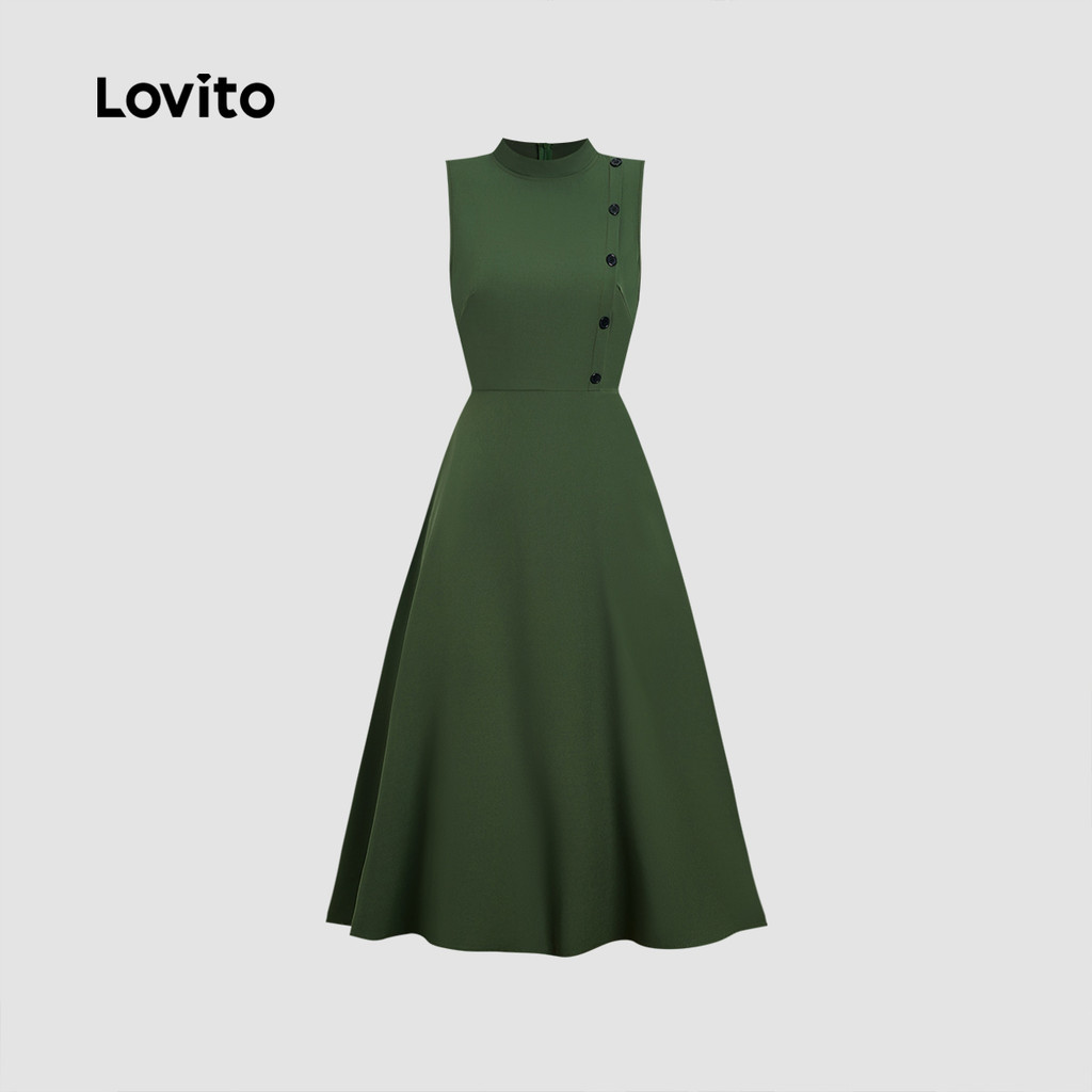 Lovito Vestido Verde Primavera/verão Clássico e Versátil com Botões Na Frente e Zíper para mulheres LBL33004