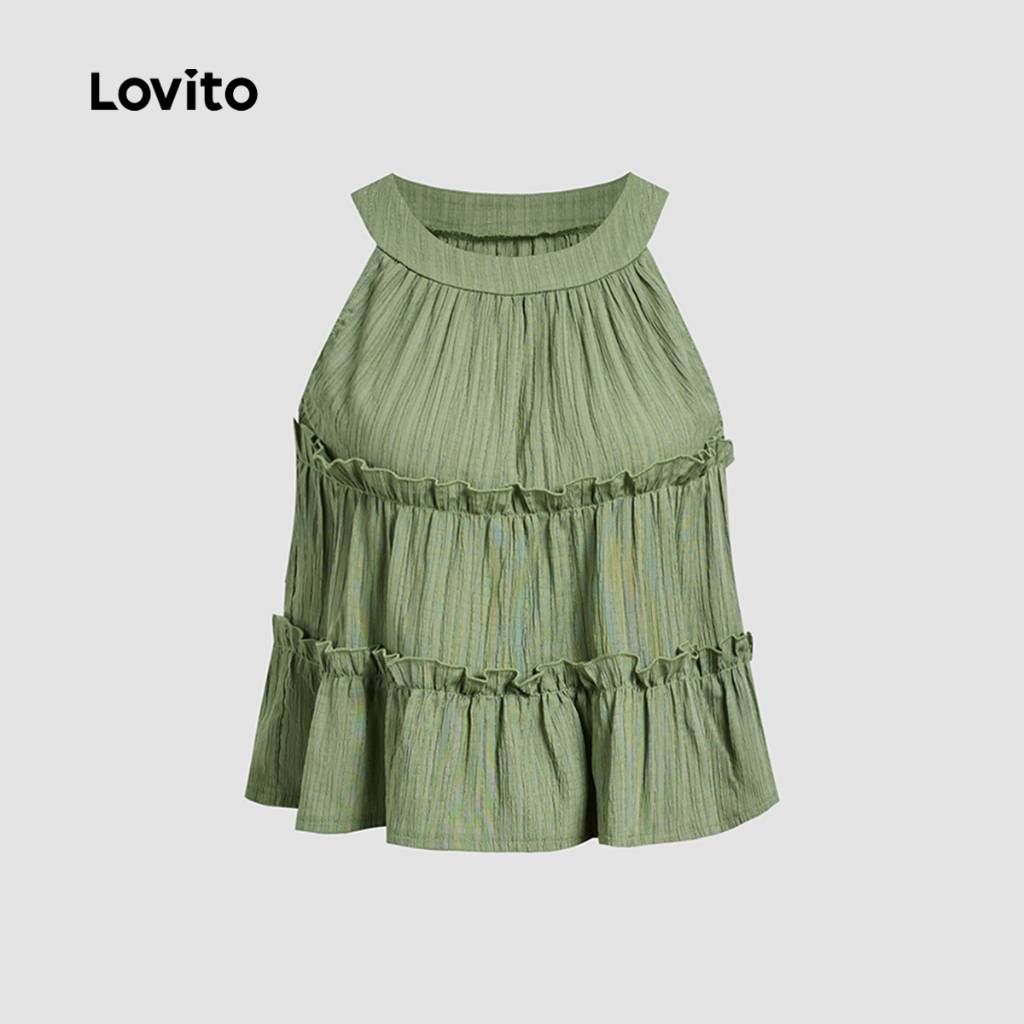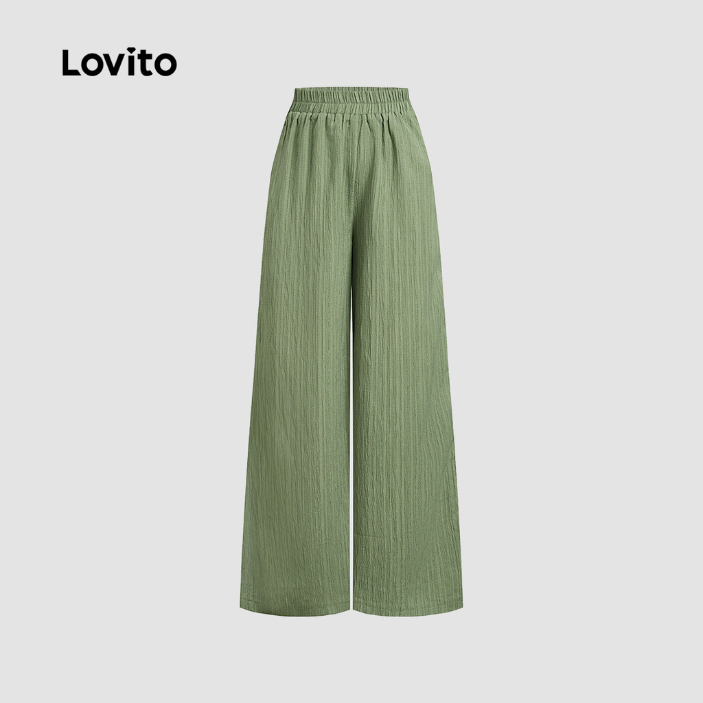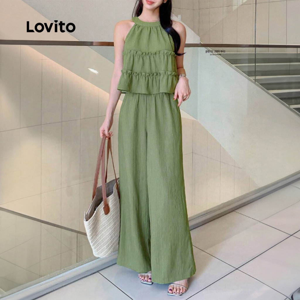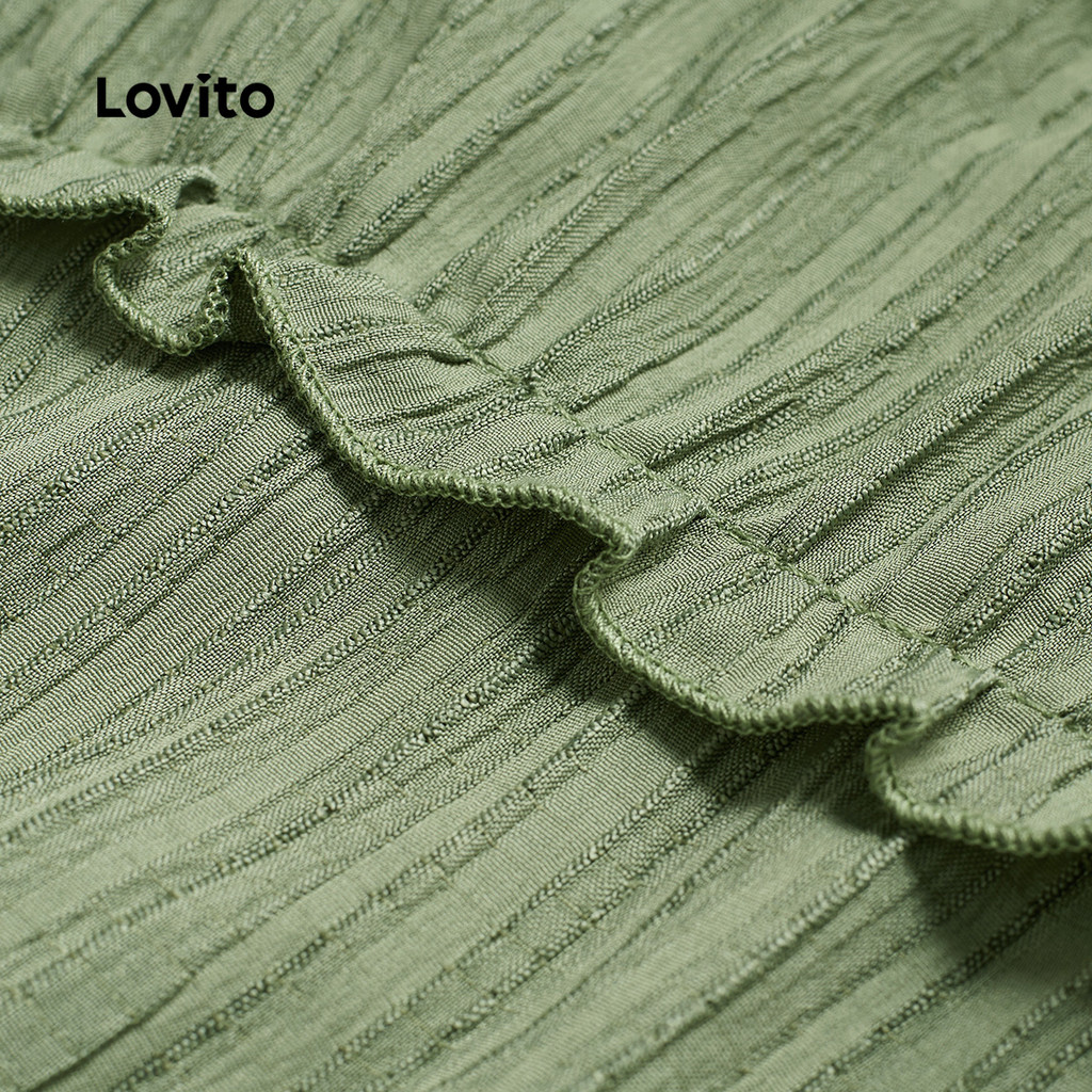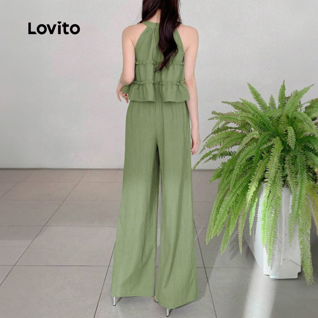 Lovito Conjuntos de calças elegantes com babados, hortênsia e calças verdes leves para mulher LB135LD425