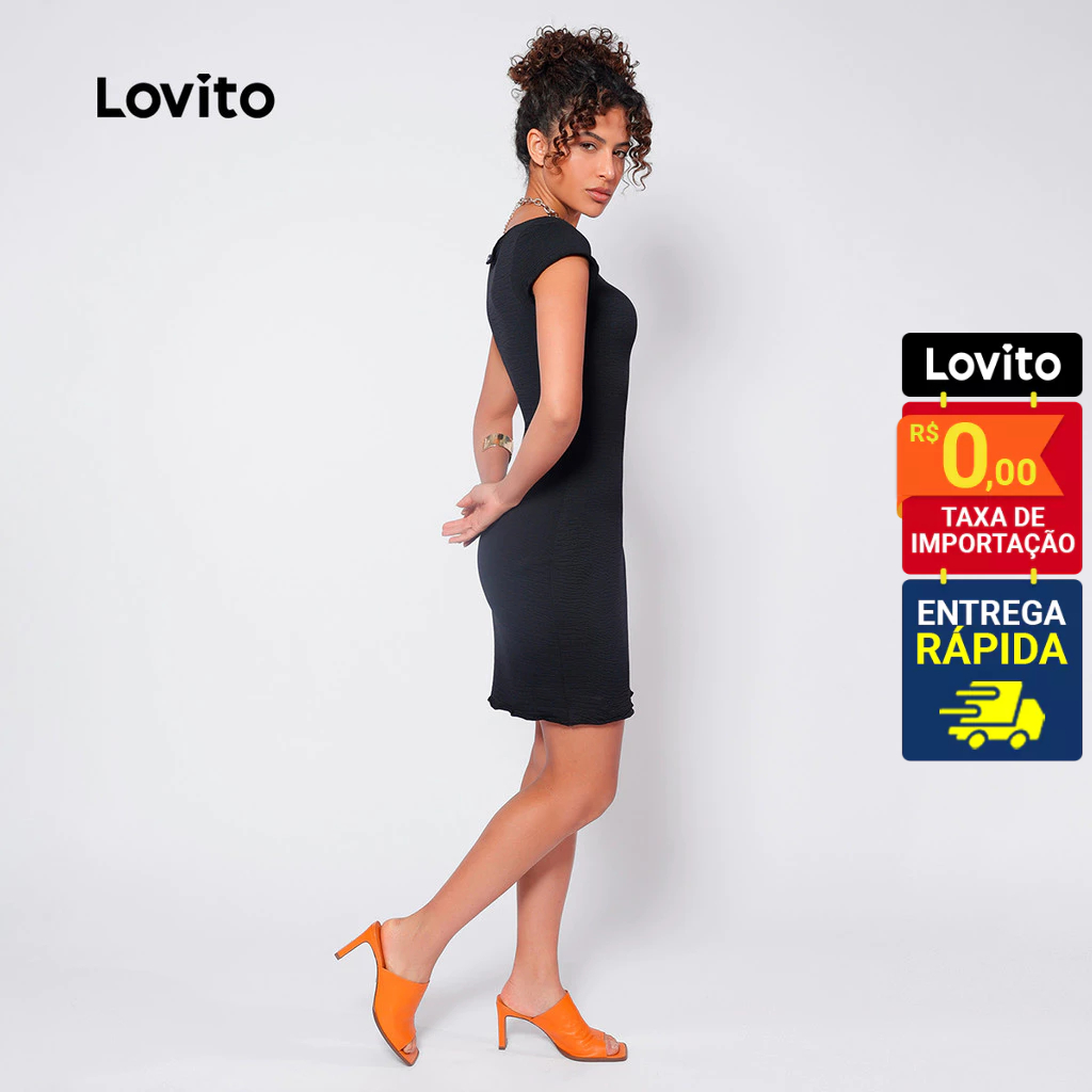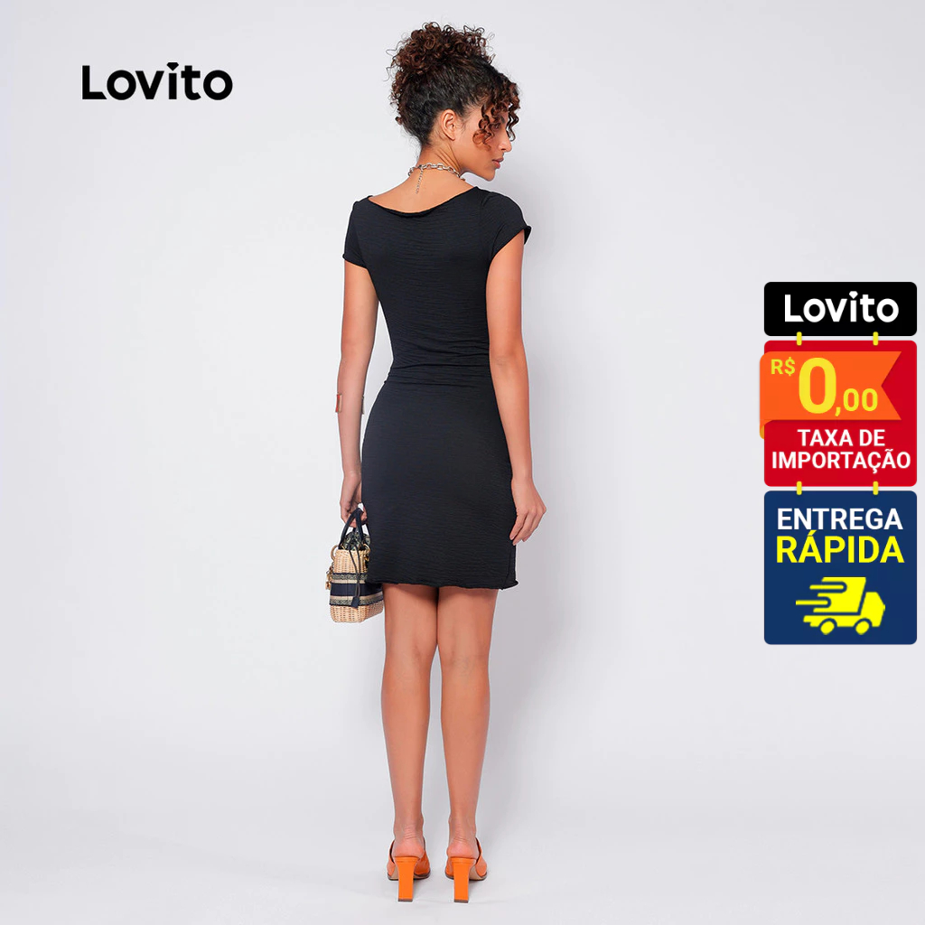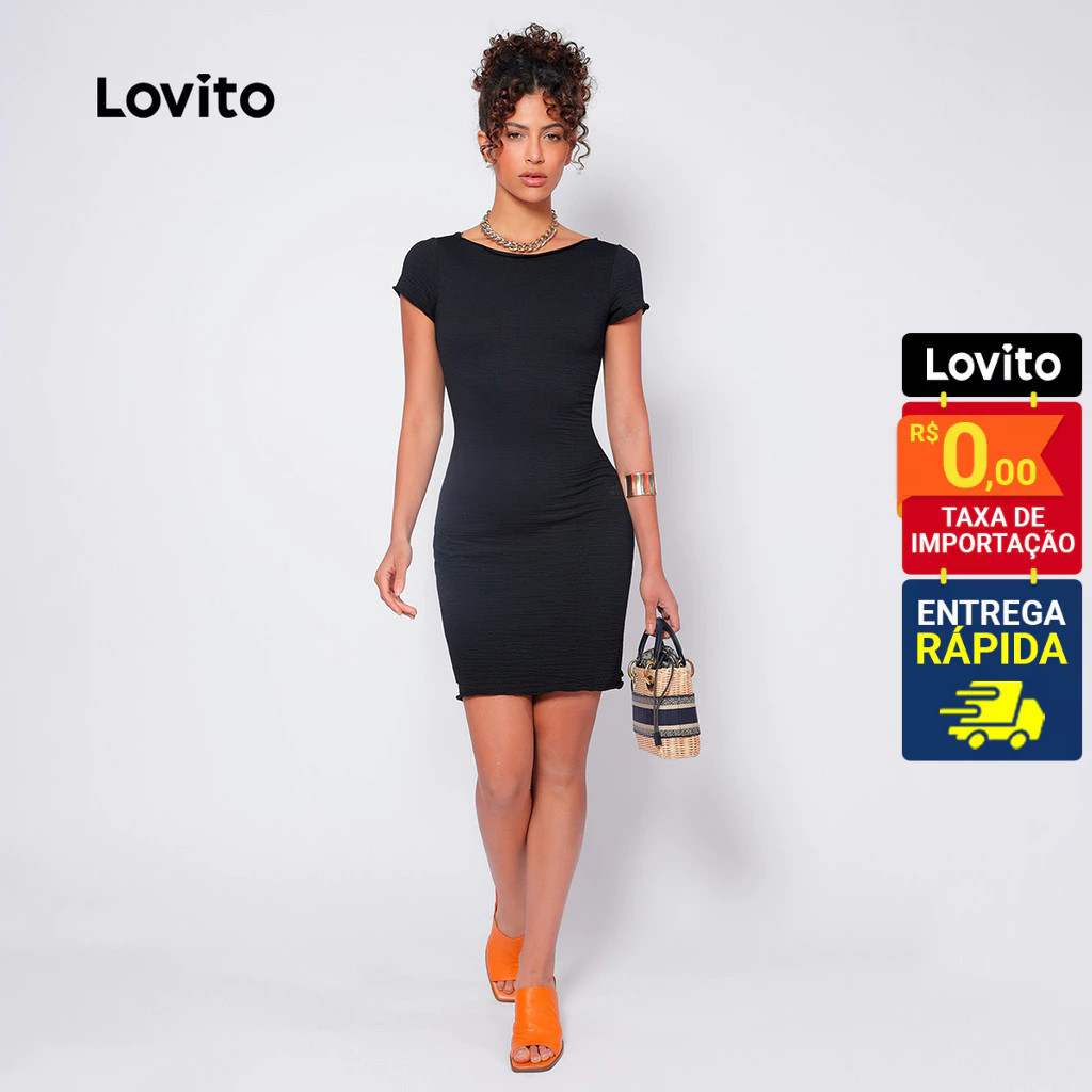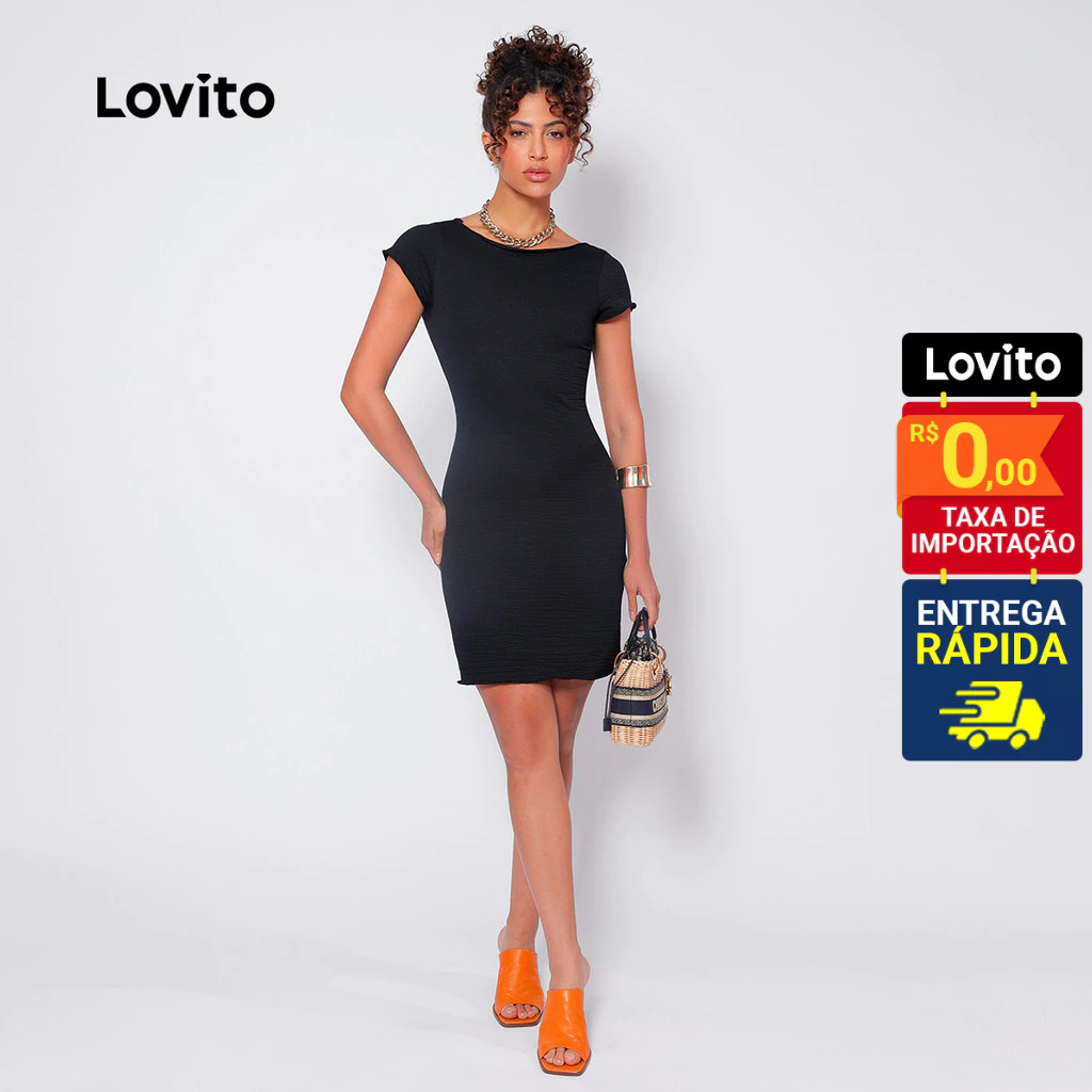 Lovito Vestido Canelado Liso Elegante Feminina LB559BRL589