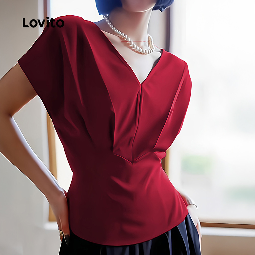 Lovito Blusa Elegante De Festa Vermelha Plissada Assimétrica Blusa Bordô Para Primavera/verão Feminina L166AD163