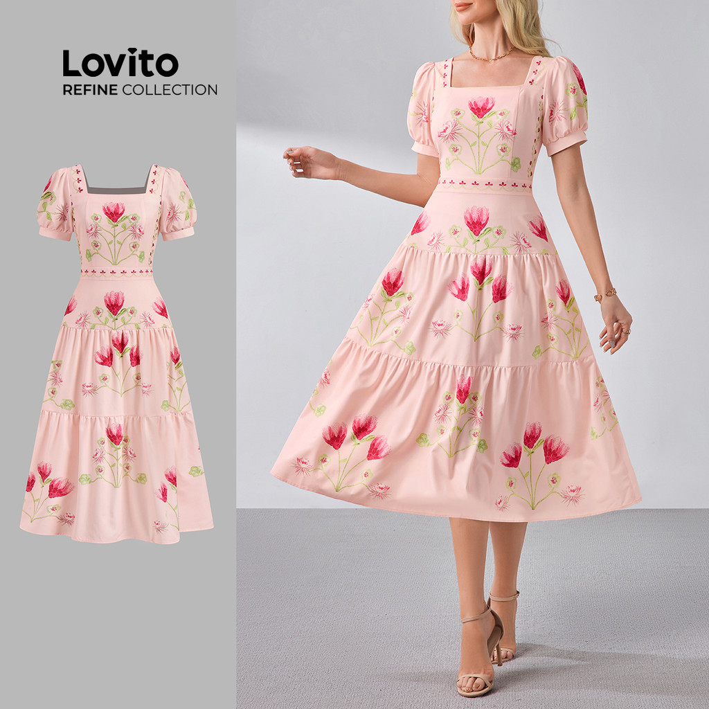 (Lovito Refine) Vestido Elegante em Camadas com Bloqueio de Cores para Primavera/verão para mulheres LR13L094