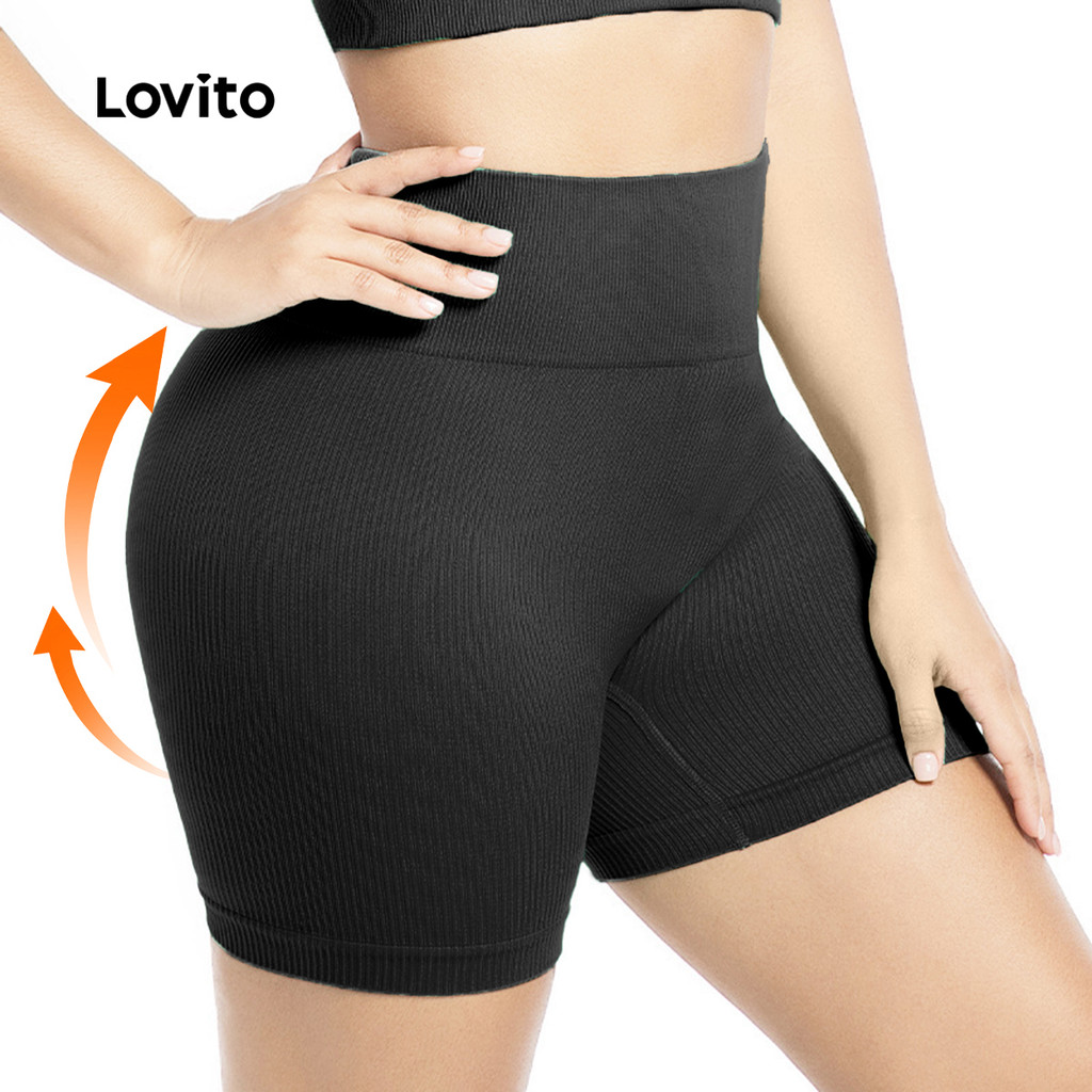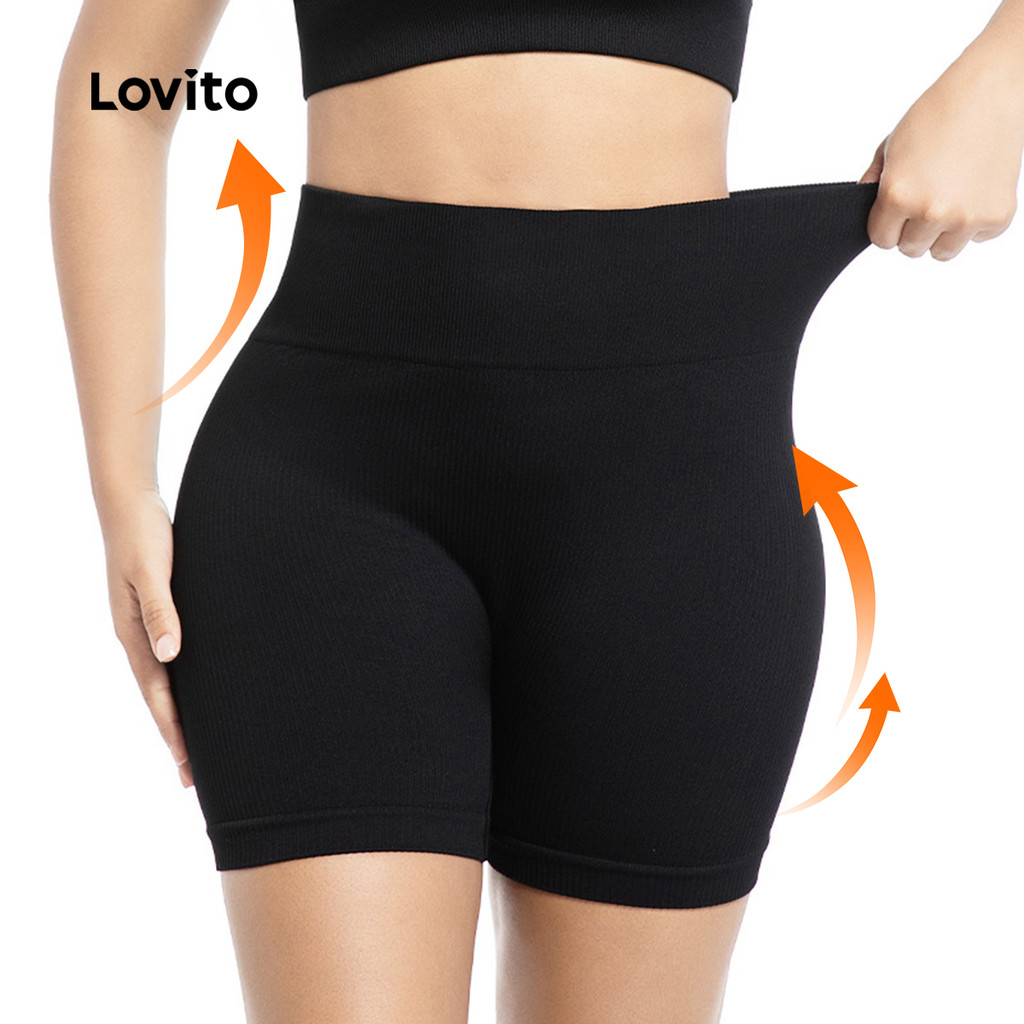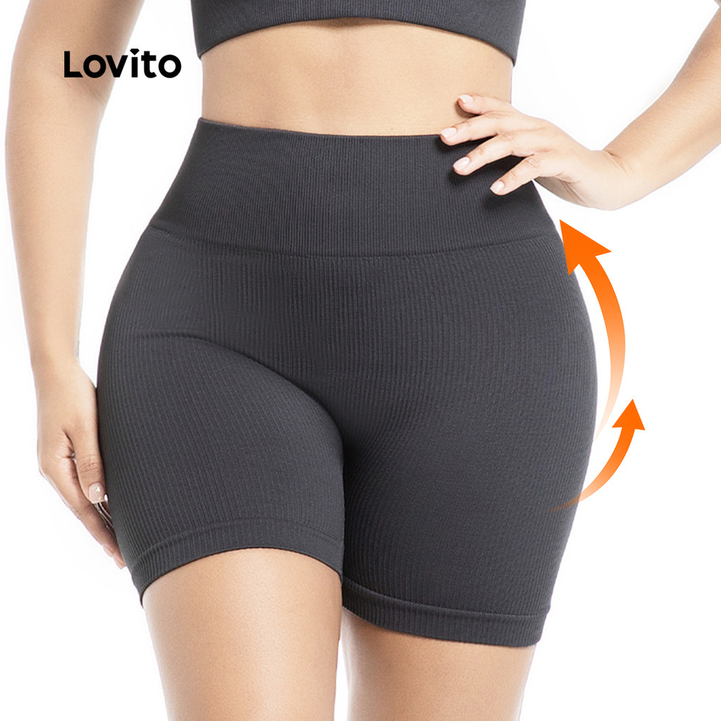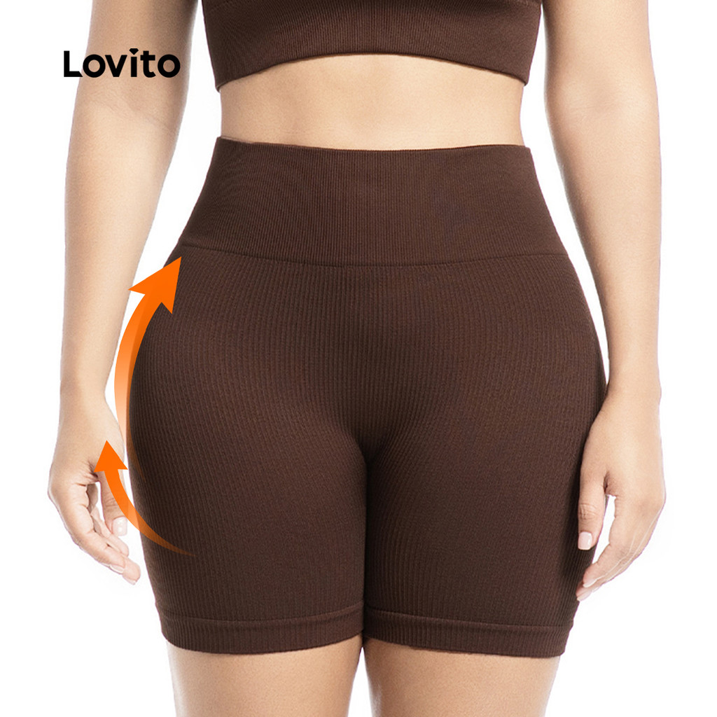 Lovito Shorts Esportivos com Controle de Barriga Levantamento de Bumbum Elástico Marrom 4 vias LNA133046