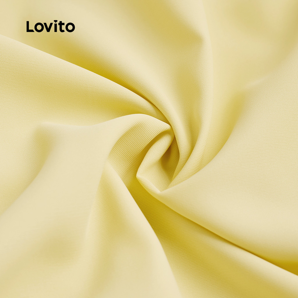 Lovito Elegante Vestido Amarelo De Metal Liso Com Bolso Falso Primavera/Verão Para Mulheres L134LD127