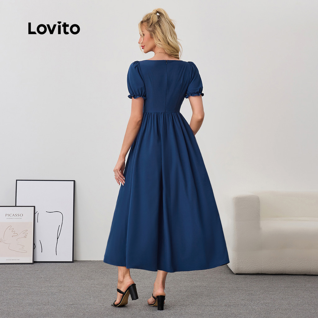 Lovito Vestido Feminino Elegante Liso com Botões Frontais para Primavera/Verão LBL24070