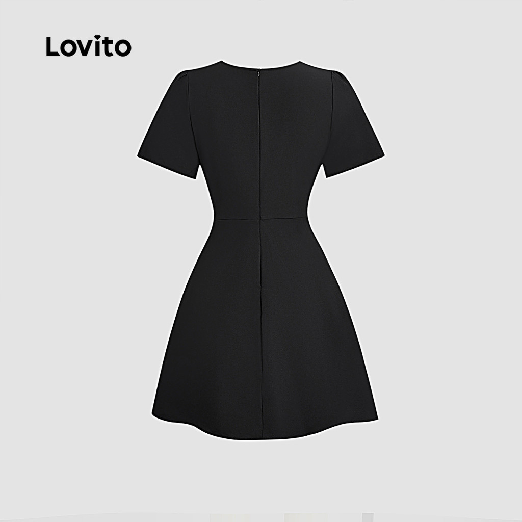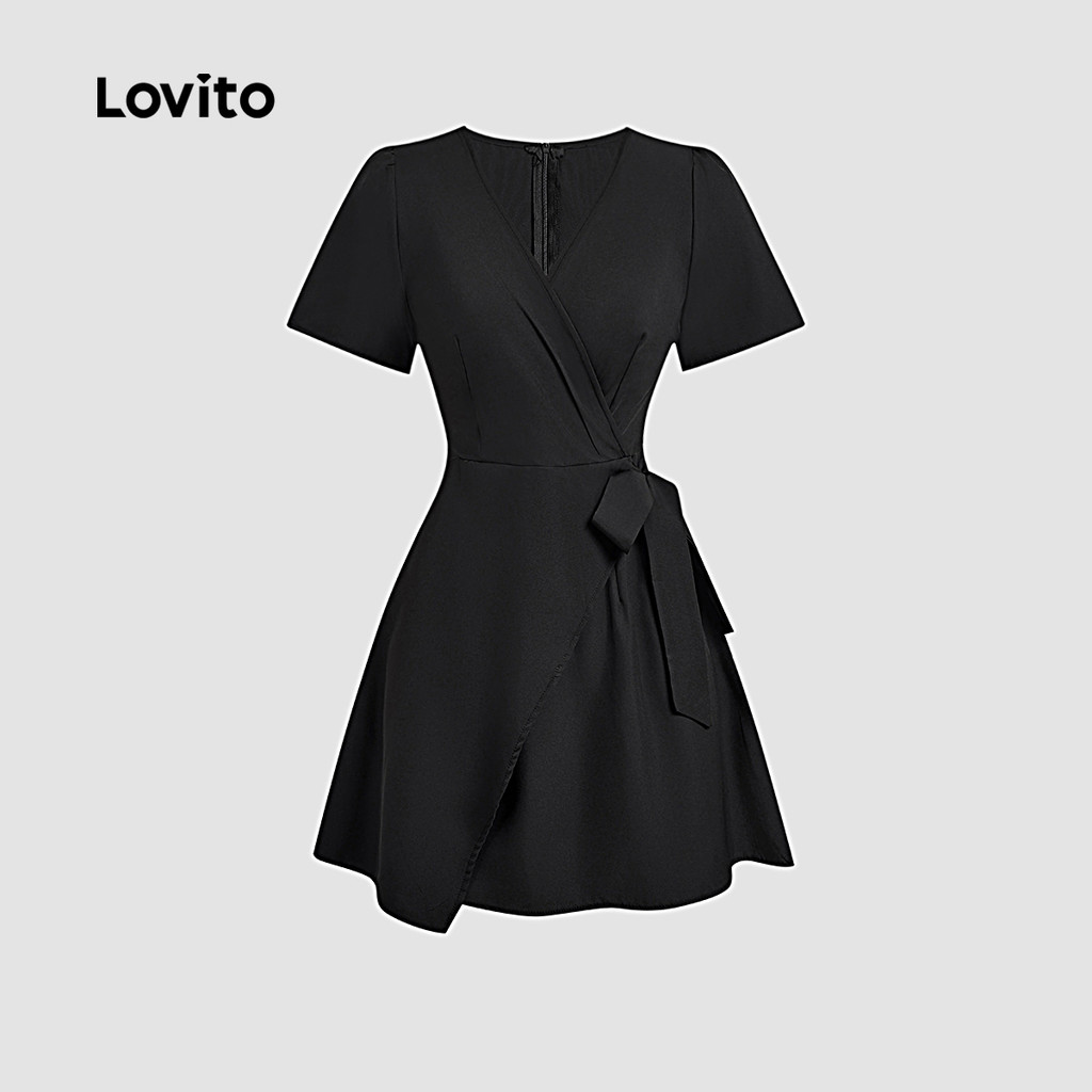 Lovito Vestido Casual Envelope Com Amarração Frontal Macio E Confortável Preto Para Primavera/verão L137ED742