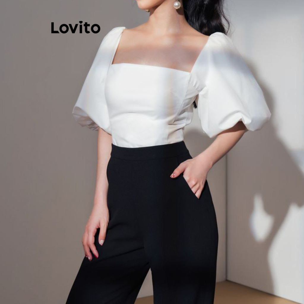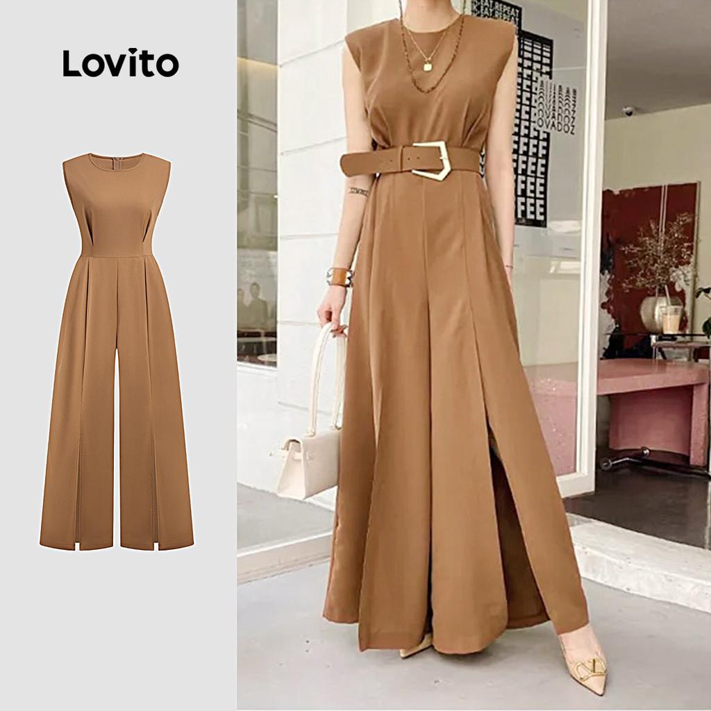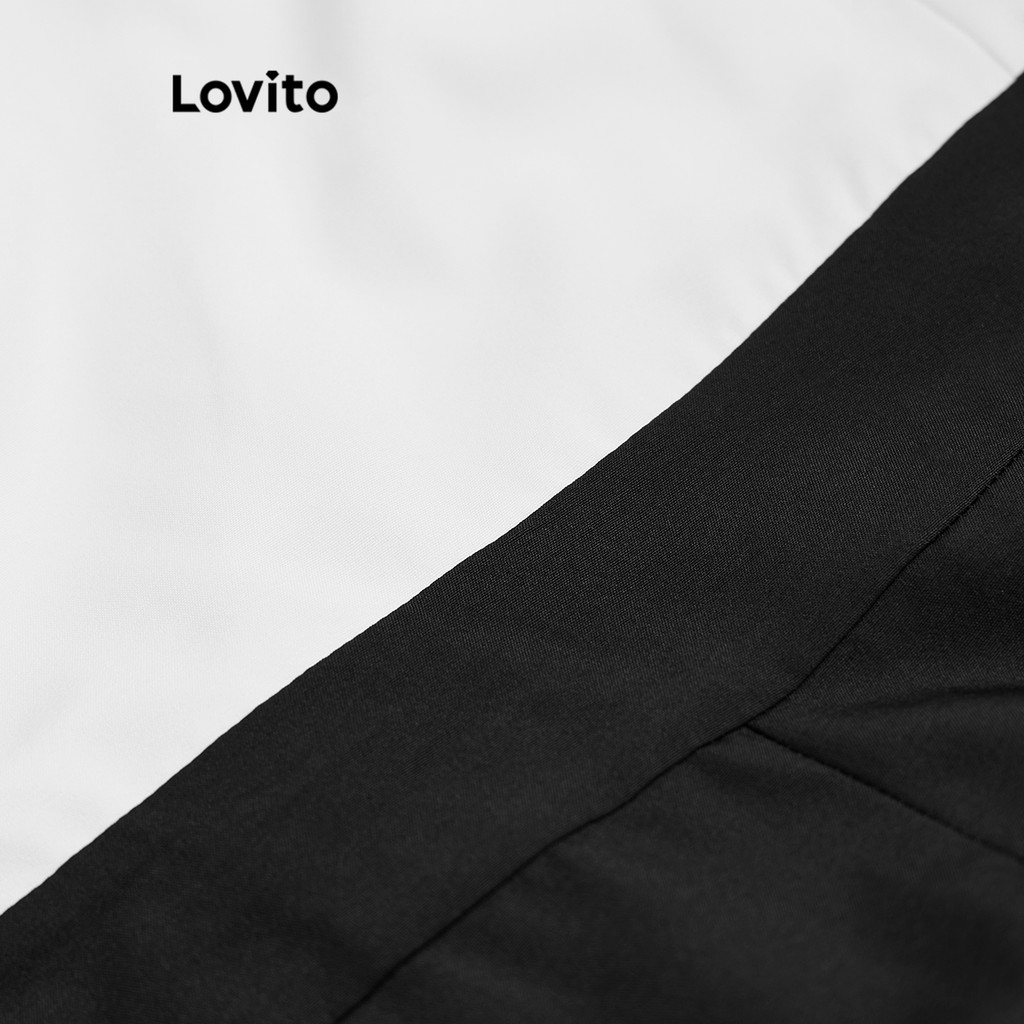 (Trendy) Lovito Macacão Casual Colorblock Drapeado Verão/Primavera Para Mulheres L110AD1310