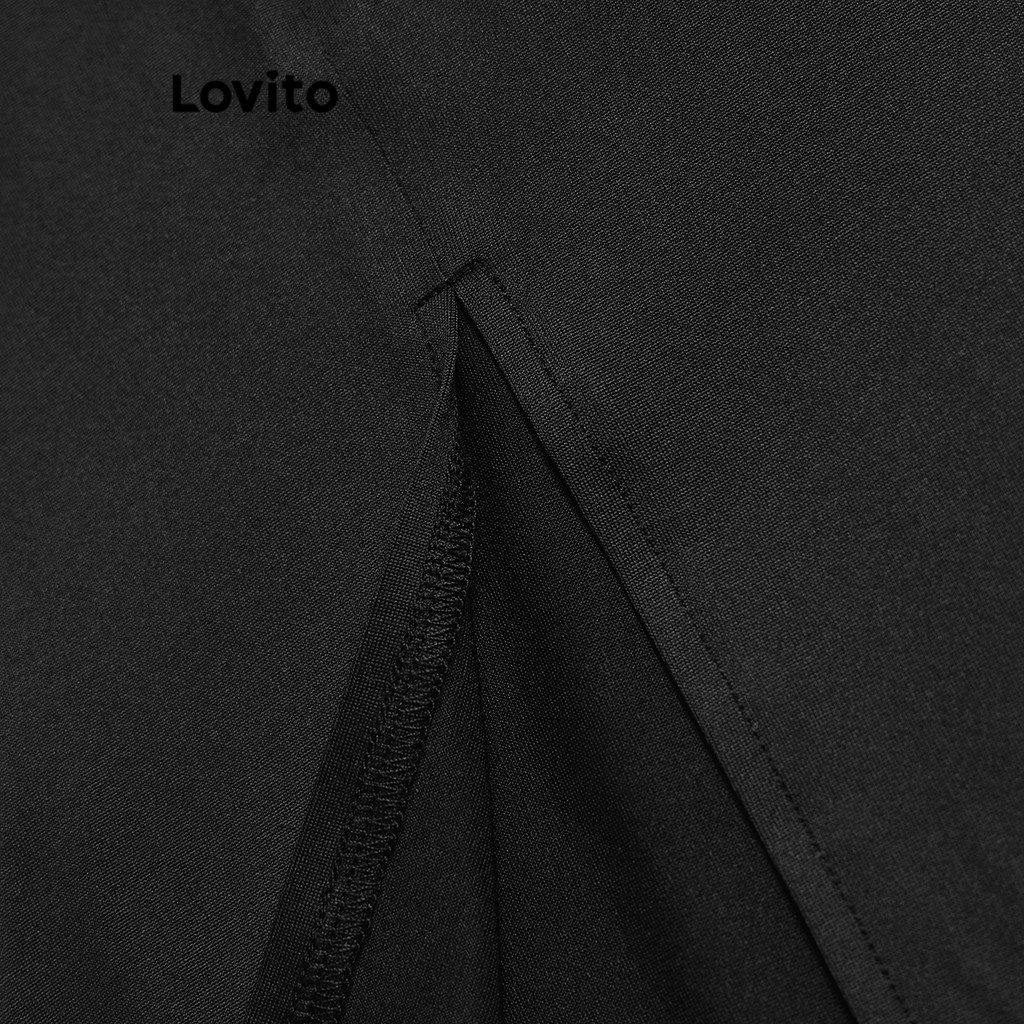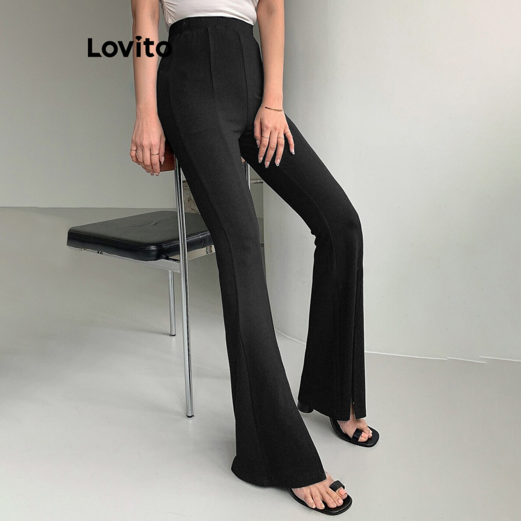 Lovito Calça Feminina Lisa com Frente Dividida e Design Elegante L95ED030