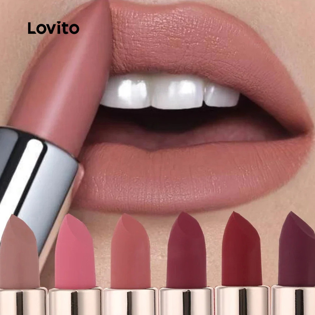 Lovito Casual Liso À Prova D'Água E Não Remove Maquiagem Brilho Labial Hidratante Premium Fosco Para Mulheres LCS09105