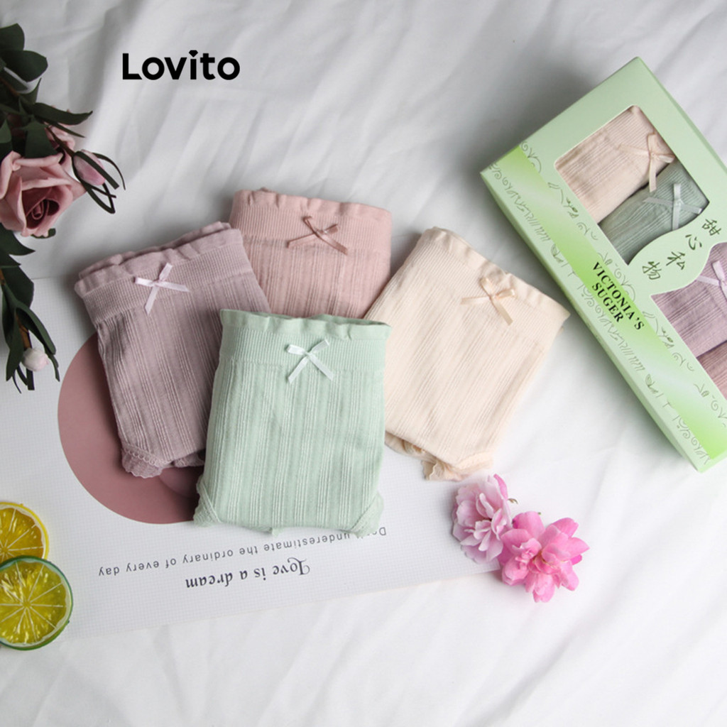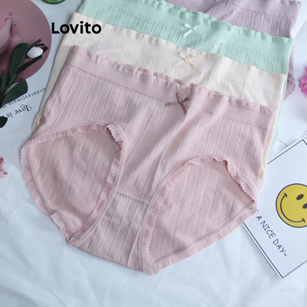 (Trendy) Lovito Calcinha Casual Calcinha Básica Lisa Para Mulheres LNA34063 (Multicolorido)