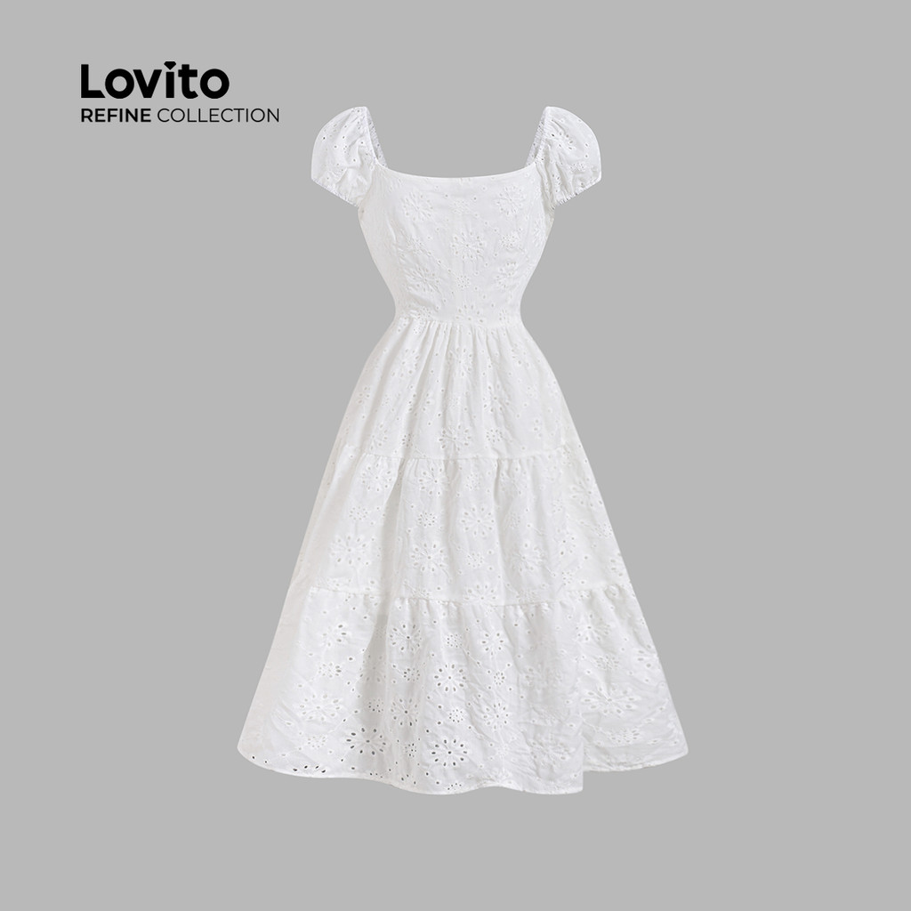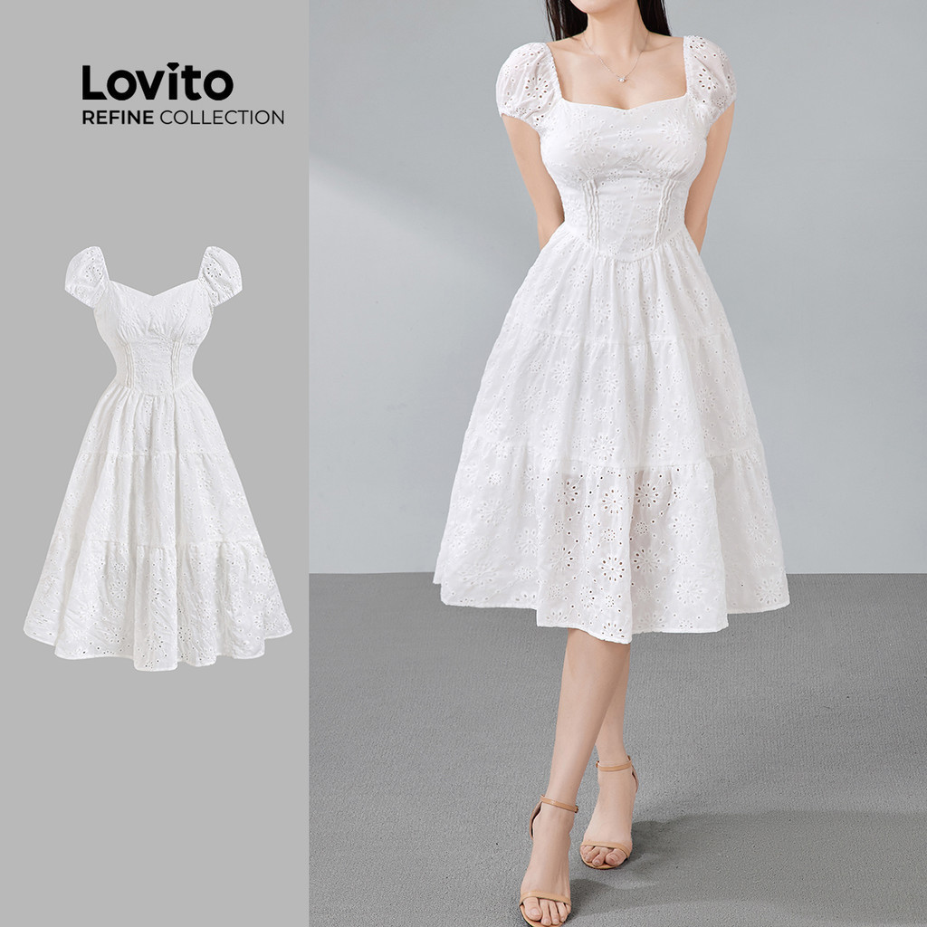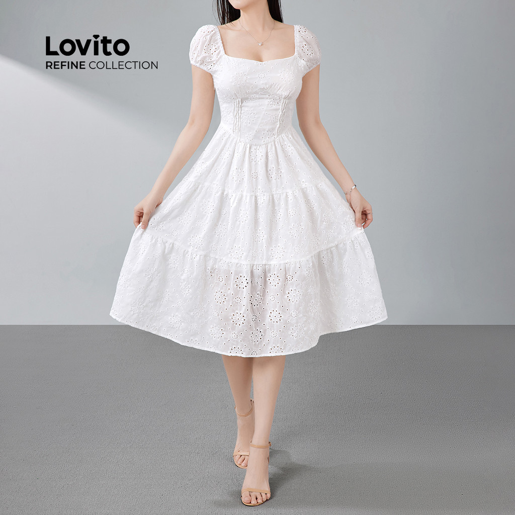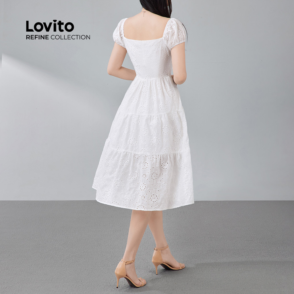 (Lovito Refine) Vestido Elegante De Algodão Estruturado Com Jacquard Para Primavera/verão Branco Para Mulheres LR13E224