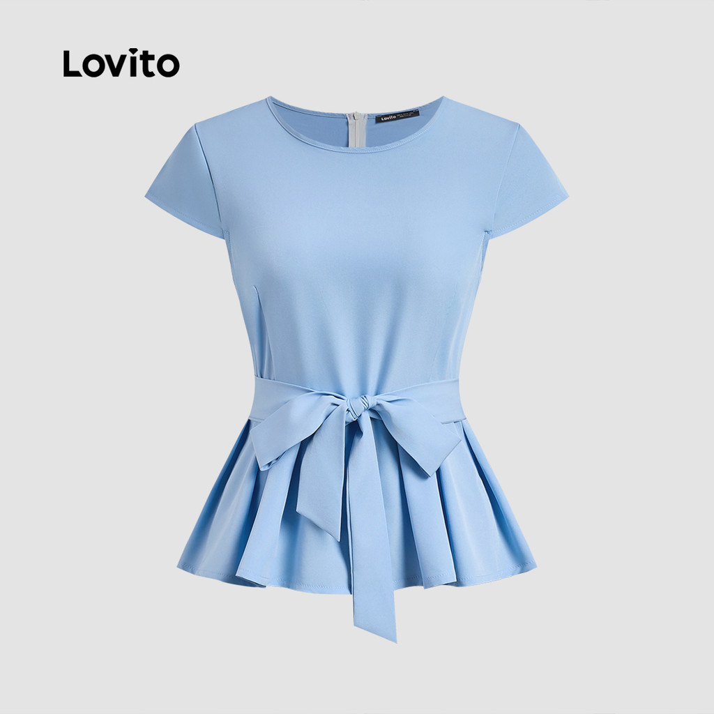 Lovito Blusa Elegante com Cinto Primavera/verão Azul para mulheres L149ED136
