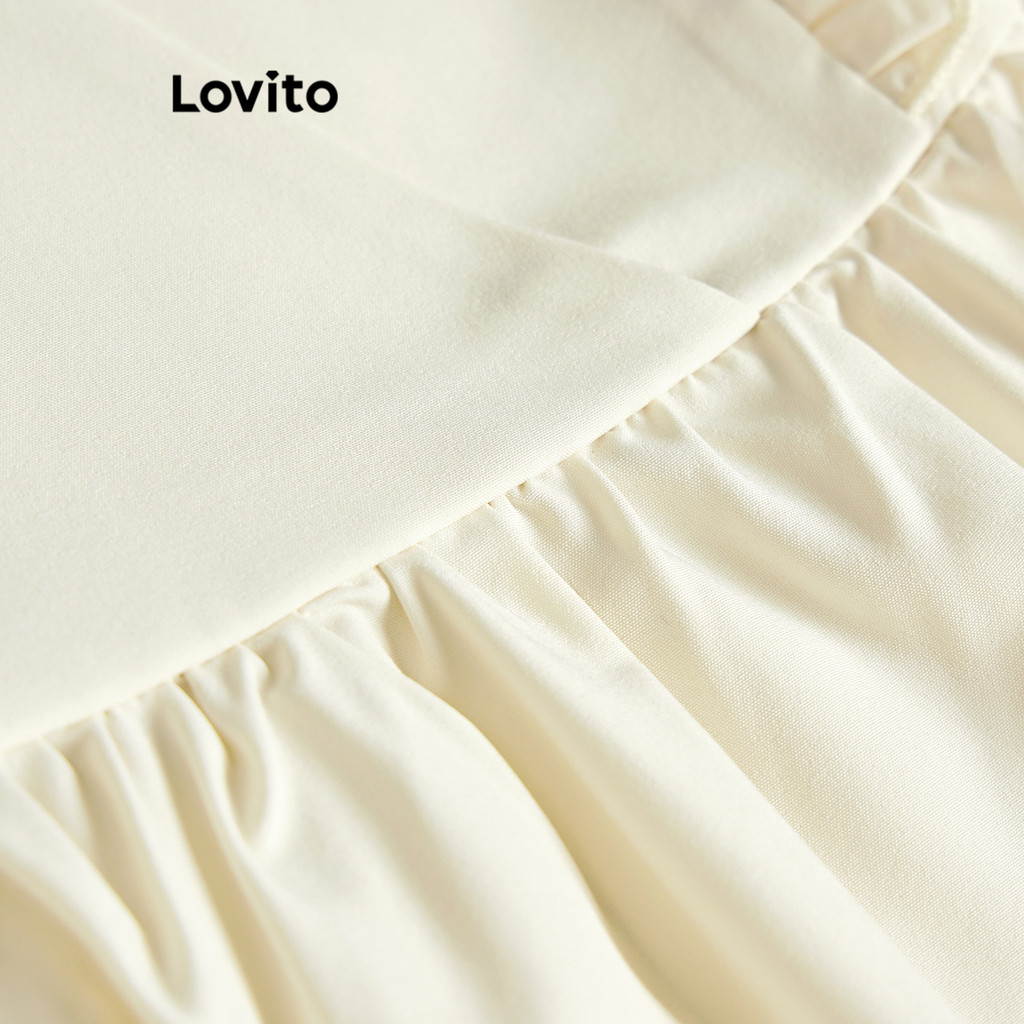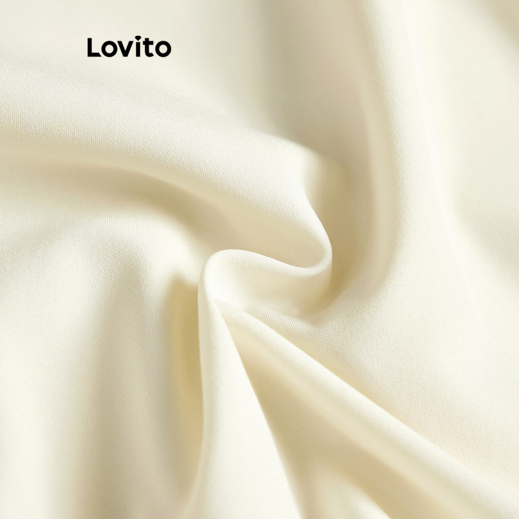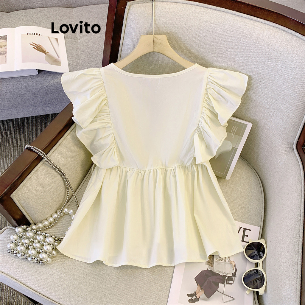(Trendy2) Lovito Blusa Casual Lisa Com Cadarço E Acabamento Em Alface Para Mulheres L68ED004 (Multicolorido)